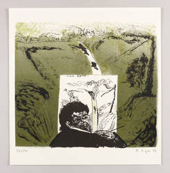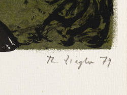 1979. Farboffsetlithografie / Feder- & Pinsellithografie, in Grün & Schwarz, auf hellchamois Maschinenkarton. – Originale Künstlergrafik, von Thomas Ziegler. – Auflage Exemplar Nr. 30/200. – 29,5 x 33,2 cm (Darstellung / Druckbild), 37 x 35 cm (Blatt).