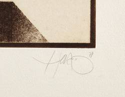 1978/1979. Radierung / Strichätzung, mit Plattenton, in Sepia, auf weichem chamois Hahnemühle. – Originale Künstlergrafik, von Walter Herzog. – Auflage Exemplar Nr. 32/75. – 27,1 x 24,9 cm (Darstellung / Platte), 39 x 36 cm (Blatt).