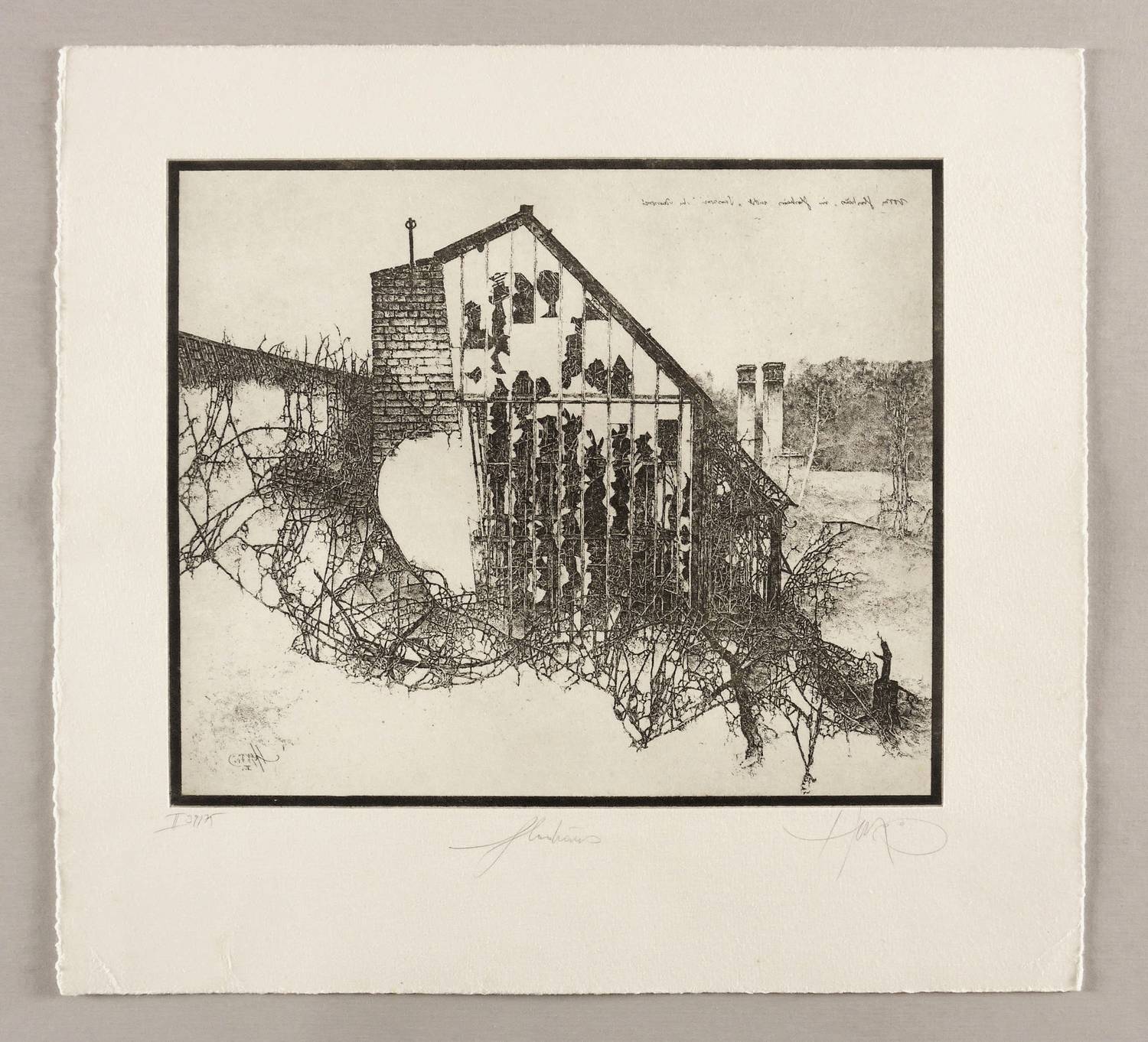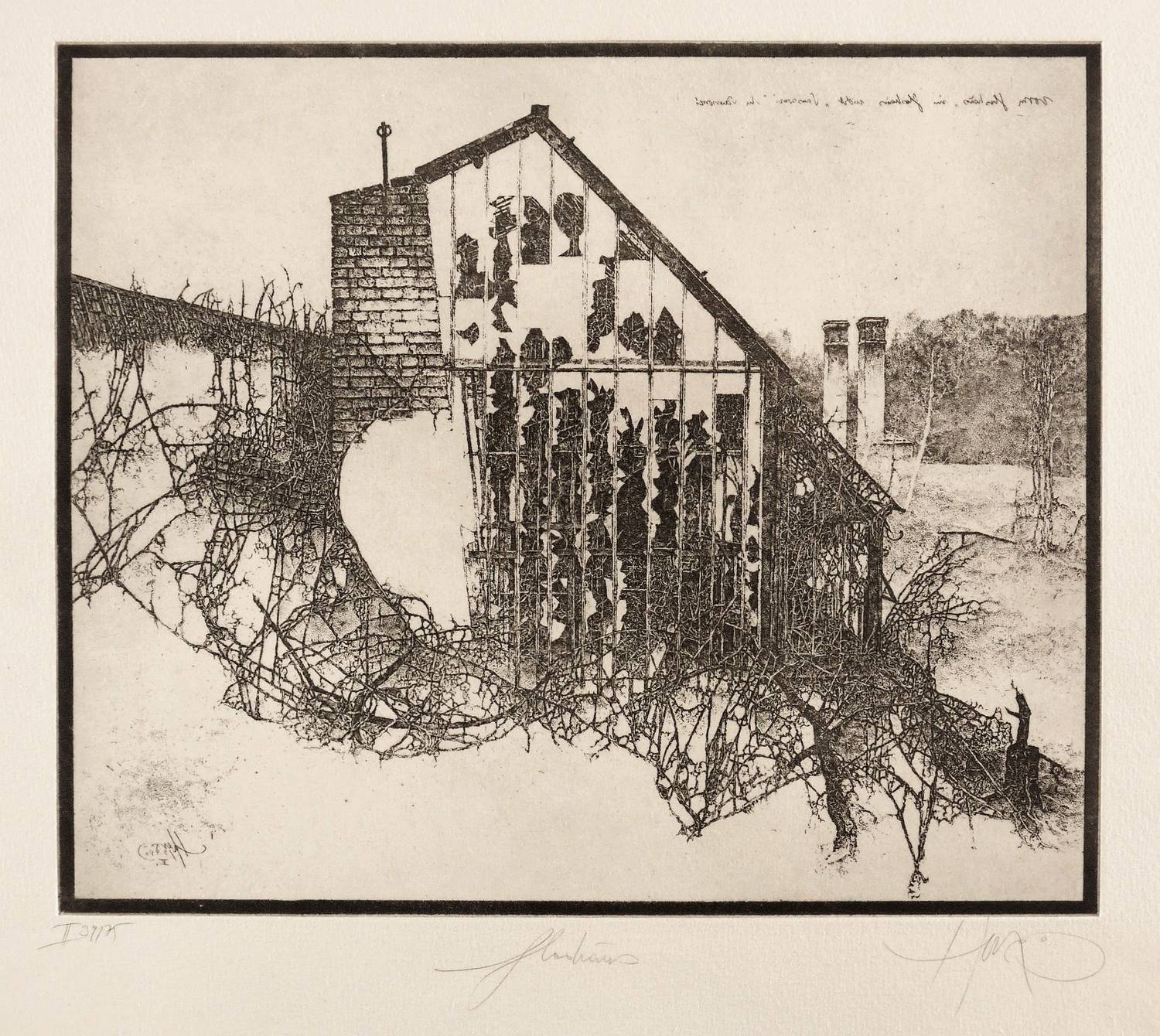 WVZ 198. – Rechts unten in Bleistift signiert: ″Herzog″. Links Auflagenbezeichnung: ″II 39/75″. Mittig Titel: ″Glashaus″. In der Platte links unten Signatur und Jahr: ″Herzog 1980 V″. Rechts oben bezeichnet: ″Vorm Glashaus, im Glashaus, nicht 'Sanssouci' in Sanssouci″. – Sehr guter Zustand.
