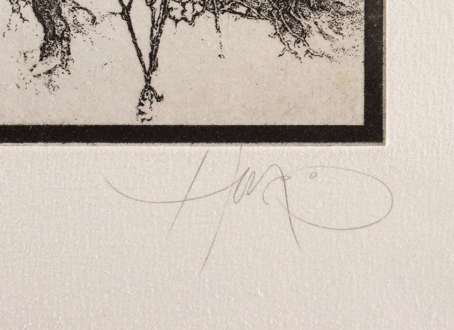 1980. Radierung / Strichätzung, mit Plattenton, in Schwarzbraun, auf weichem hellchamois Velin. – Originale Künstlergrafik, von Walter Herzog. – Auflage Exemplar Nr. 39/75. – 24,6 x 29,4 cm (Darstellung / Platte), 36 x 39 cm (Blatt).