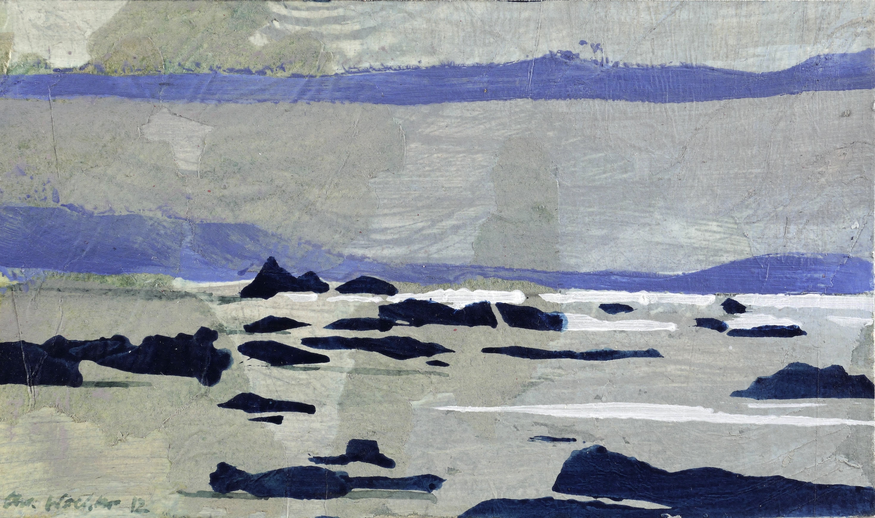 2012. Collage / Papiercollage & Mischtechnik, auf Karton. – Originale Künstlergrafik, von Christiane Wachter. – Unikat. – 11,0 x 18,5 cm (Darstellung / Blatt).