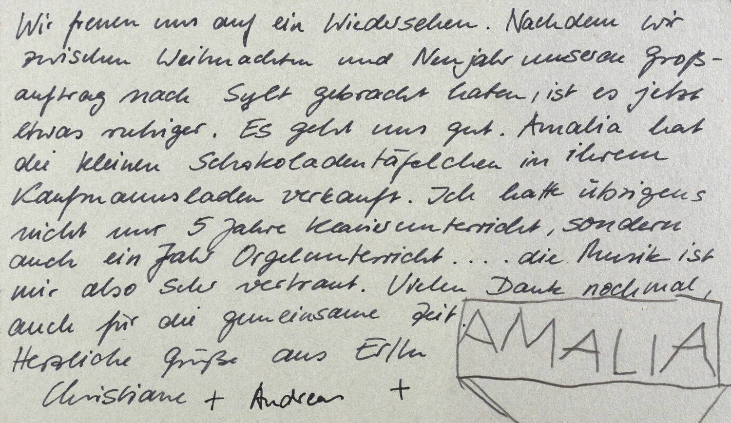 Links unten in der Darstellung signiert und datiert. – Beigabe: Brief der Künstlerin an Jürgen Steinfeld. – Tadellos. Sehr guter Zustand.