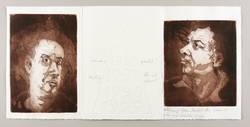 1996. Radierung / Aquatinta & Strichätzung, in Violettschwarz, auf weißem Büttenkarton. – Neujahrsgrafik, von Willibrord Haas. – 26,0 x 17,8 cm (Darstellung / erste), 22,5 x 19,0 cm (Darstellung / zweite), 30 x 62 cm (Blatt).