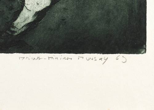 In Bleistift rechts unten signiert und datiert: ″MAINA-MIRIAM MUNSKY 69″. Links Auflagenbezeichnung: ″PROBE + E.A.″ Dazu Widmung. – In den Ecken Spuren aus dem Dcruckprozess. Sonst ohne Tadel. Sehr guter Zustand.