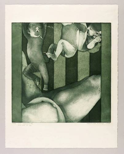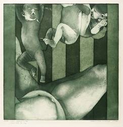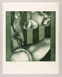 1970. Radierung / Aquatinta & Strichätzung, in Dunkelgrün, auf gelblichem Büttenkarton. – Von Maina-Miriam Munsky. – Probedruck. – 39,8 x 39,6 cm (Darstellung / Platte), 57 x 45 cm (Blatt).