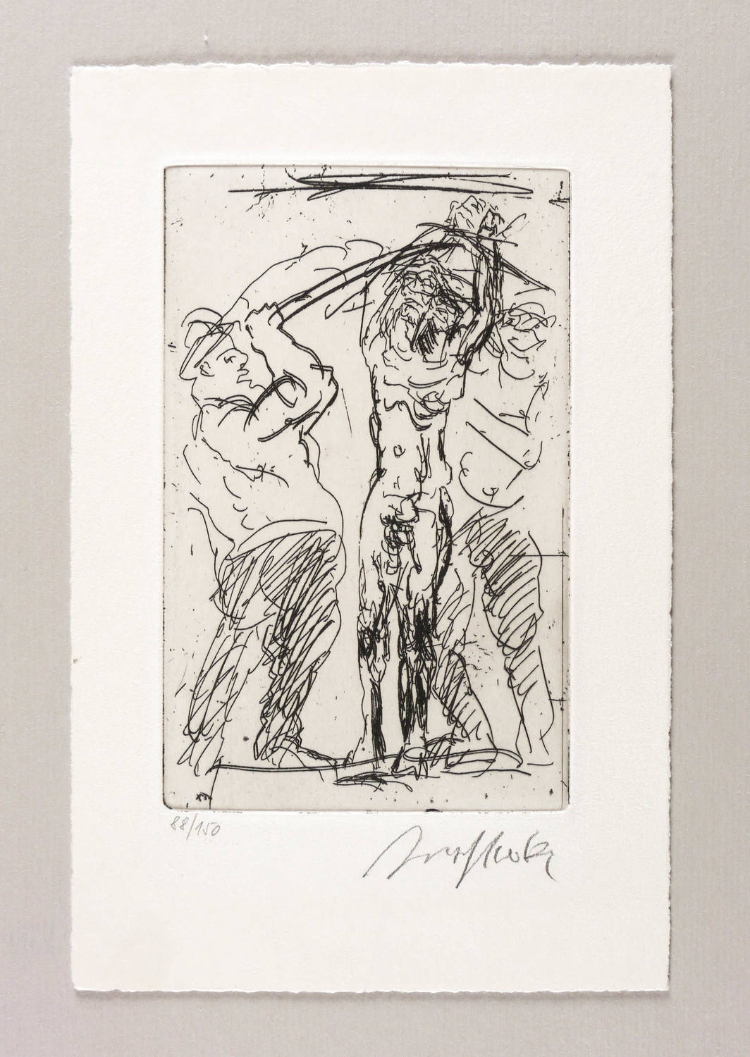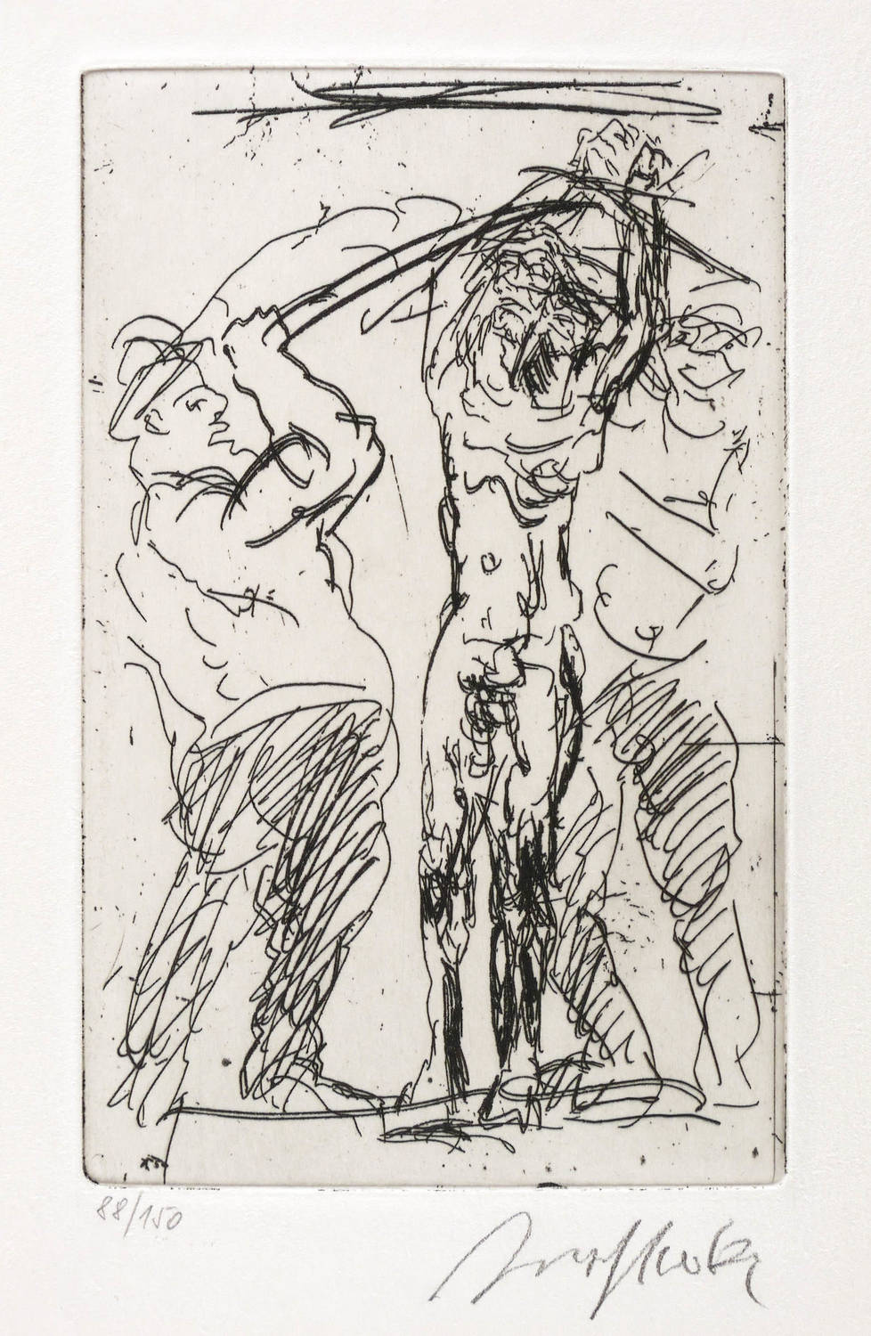 1999. Radierung / Strichätzung, in Schwarz, mit leichtem Plattenton, auf weißem Velin. – Originale Künstlergrafik, von Alfred Hrdlicka. – Auflage Exemplar Nr. 88/150. – 16,2 x 10,2 cm (Darstellung / Platte), 23 x 15 cm (Blatt).