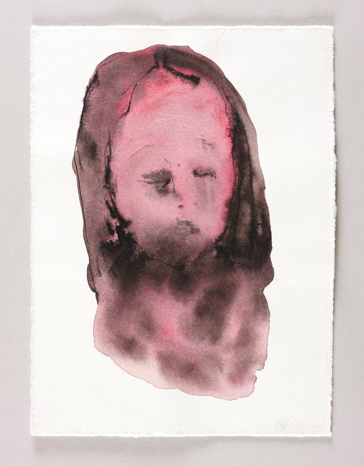 2007. Aquarell, in Rot & Schwarz, auf rauem hellchamois Bütten. – Originale Künstlergrafik, von Madeleine Heublein. – Unikat. – 23,3 x 13,3 cm (Darstellung / Platte), 27 x 20 cm (Blatt).