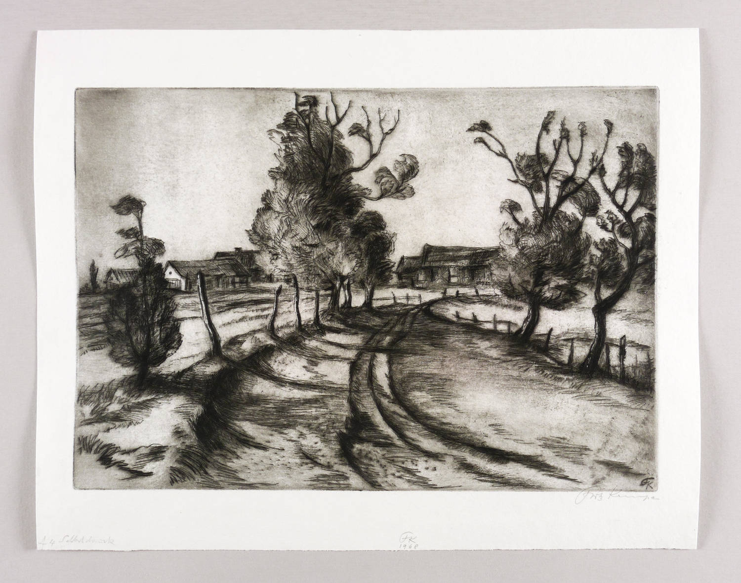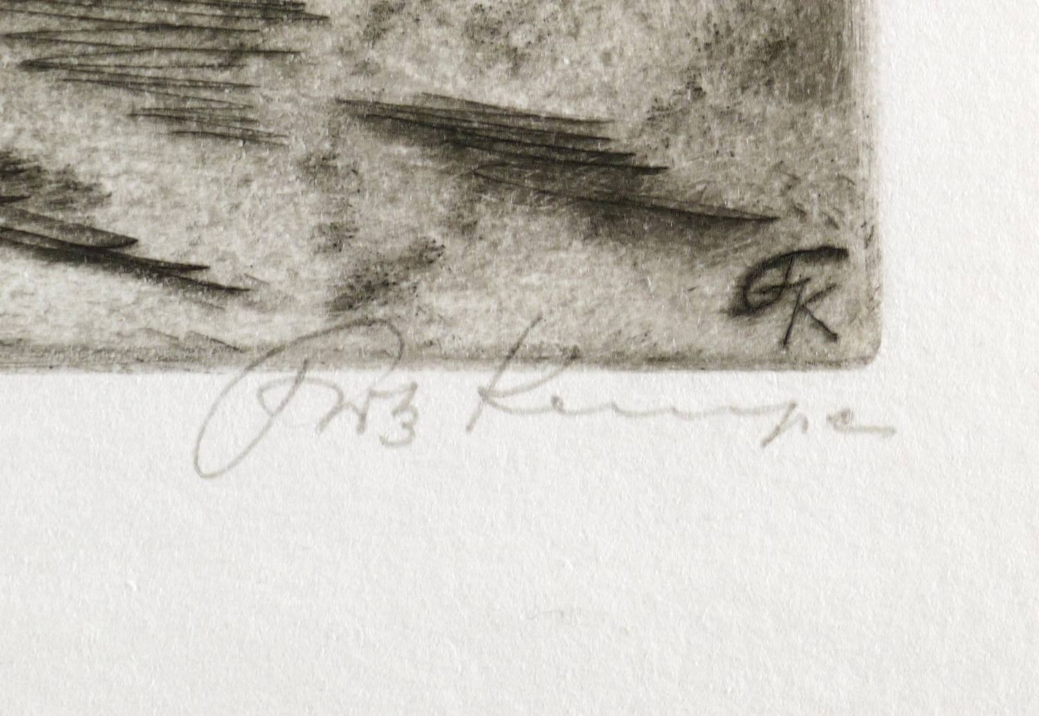 Rechts unten in Bleistift signiert: ″Fritz Kempe″. Am Blattrand links unten bezeichnet: ″4 Selbstdruck″. Mittig Monogramm und Jahr: ″FK 1968″. In der Platte rechts unten zusätzlich Monogramm. – Provenienz: aus dem künstlerischen Nachlass von Fritz Kempe. – Sehr guter Zustand.
