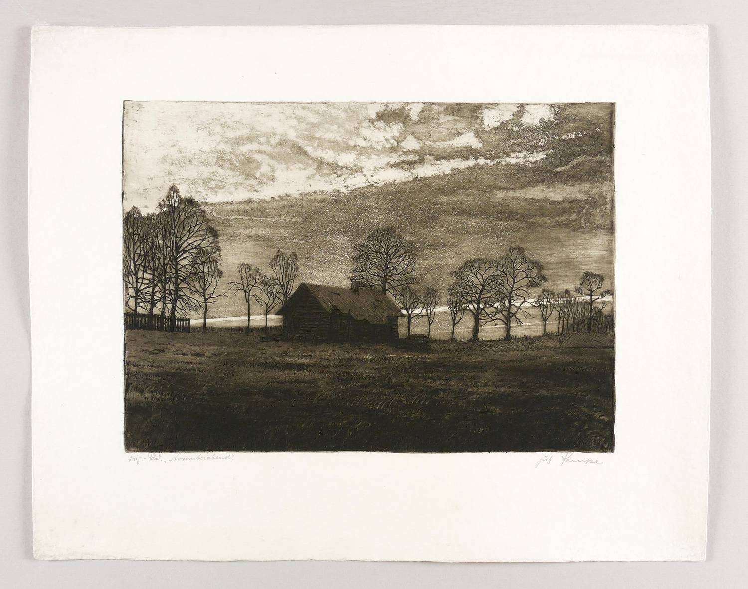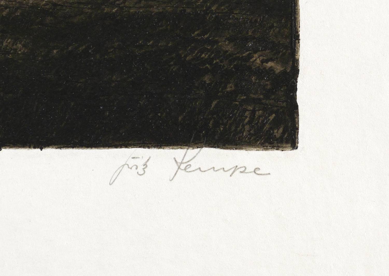 Rechts unten in Bleistift signiert: ″Fritz Kempe″. Links bezeichnet: ″Orig.- Rad. Novemberabend. – Aus dem Leipziger Frühwerk des Künstlers. - Seltenes Blatt. – Tadellos. Sehr guter Zustand.