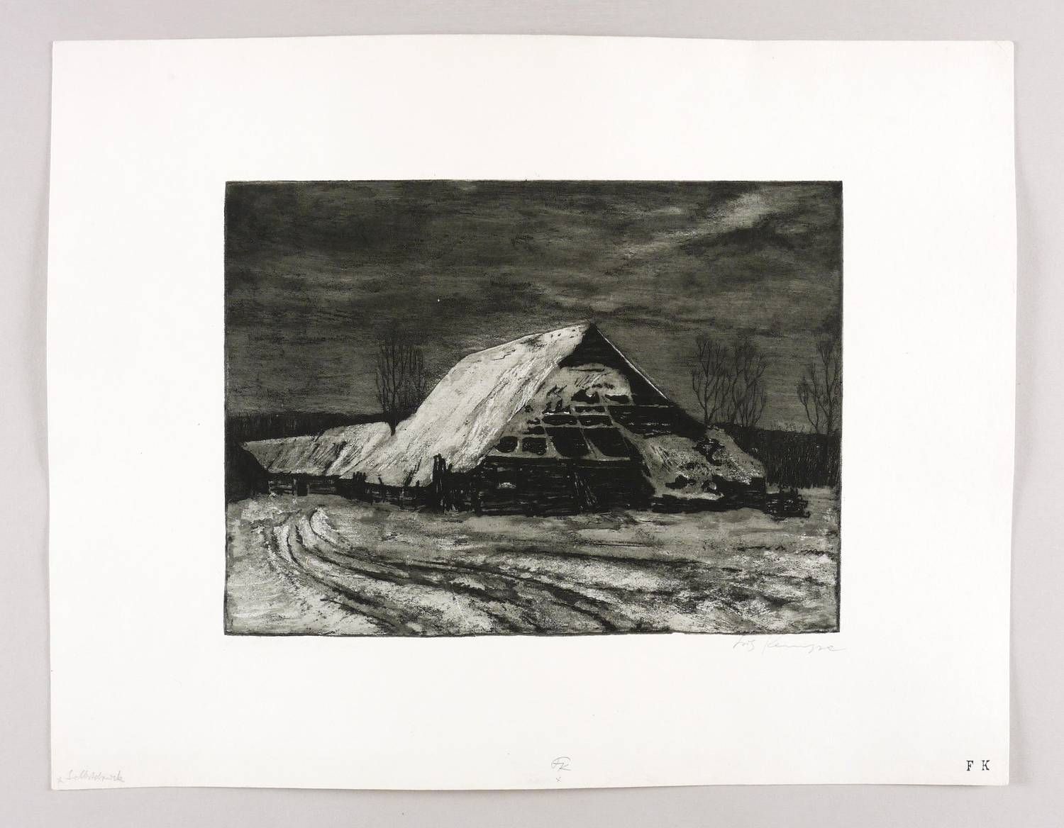 Rechts unten in Bleistift signiert: ″Fritz Kempe″. Im unteren Blattrand bezeichnet: ″Selbstdruck″. Mittig monogrammiert. Rechts Monogramm- Stempel. – Aus dem Nachlass des Künstlers. – Tadellos erhalten. Sehr guter Zustand.