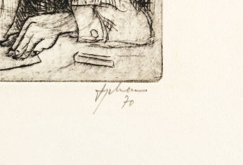 1970. Radierung / Strichätzung, in Schwarz, auf hellem Velinkarton. – Von Wilhelm Engelmann. – 12,8 x 8,9 cm (Darstellung / Platte), 26 x 20 cm (Blatt).