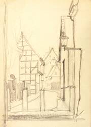 1945-1955. Zeichnung / Bleistiftzeichnung, auf gelblichem Karton. – Originale Künstlergrafik, von Wilhelm Engelmann. – Unikat. – 29,7 x 21,0 cm (Darstellung / Blatt).