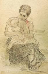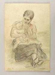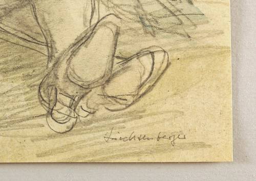 1910-1915. Zeichnung / Graphitzeichnung, leicht aquarelliert & laviert, auf gelbem Bütten. – Originale Künstlergrafik, von Hans Reinhold Lichtenberger. – Unikat. – 29,3 x 19,8 cm (Darstellung / Blatt).