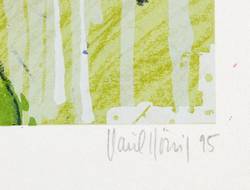 1995. Farbsiebdruck / Farbserigrafie, in 6 Farben, auf weißem Velinkarton. – Von Paul König. – Auflage Exemplar Nr. 54/60. – 23,0 x 16,5 cm (Darstellung), 30 x 21 cm (Blatt).