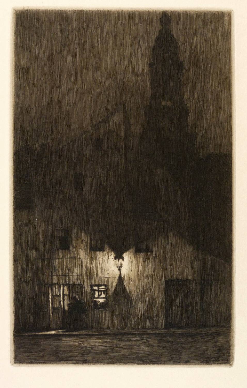 1905. Radierung / Strichätzung, in Schwarz, auf gelbem Kupferdruckpapier. – Originale Künstlergrafik, von Walter Zeising. – 22,0 x 13,8 cm (Darstellung / Platte), 34 x 26 cm (Blatt).