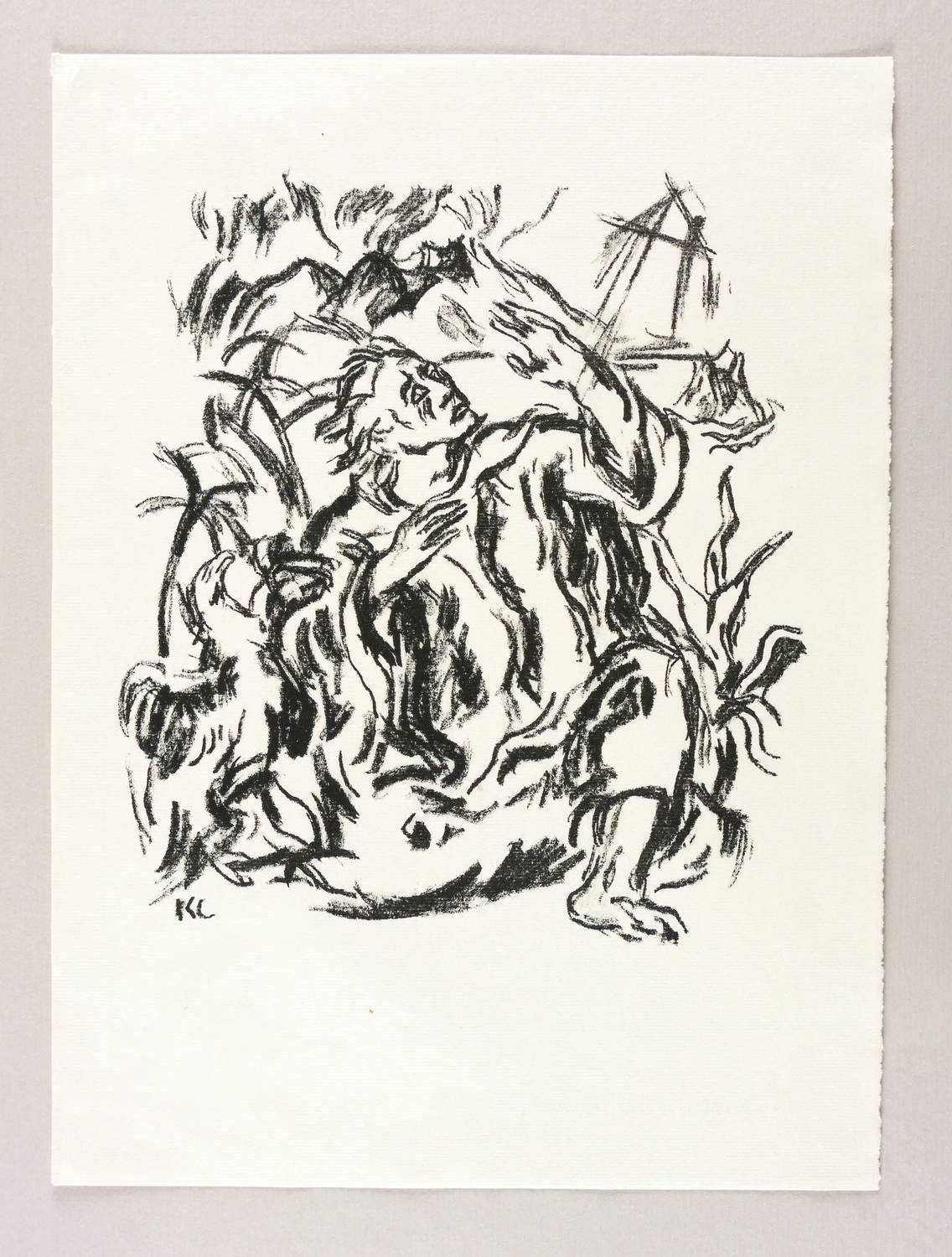 1919. Lithografie / Kreidelithografie, in Schwarz, auf hellgelbem Bütten. – Originale Künstlergrafik, von Karl Caspar. – 24,0 x 21,5 cm (Darstellung), 36 x 26 cm (Blatt).