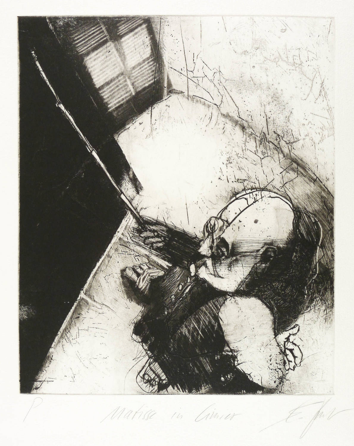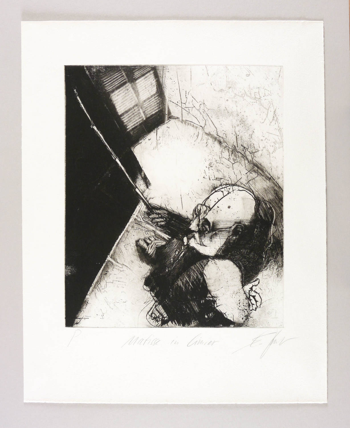 1990-1999. Radierung / Aquatinta, Strichätzung, Schmirgel & Kaltnadel, in Schwarz, auf schwerem weichem Velin. – Von Eckhard Fröschlin. – Probedruck. – 34,5 x 28,9 cm (Darstellung / Platte), 51 x 40 cm (Blatt).