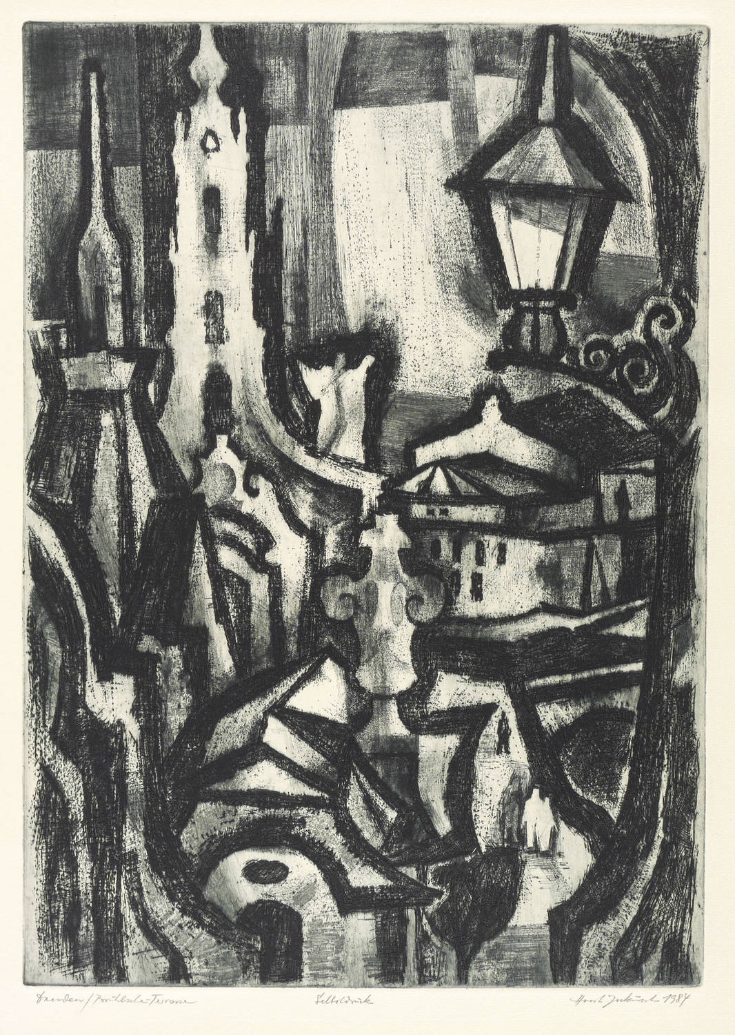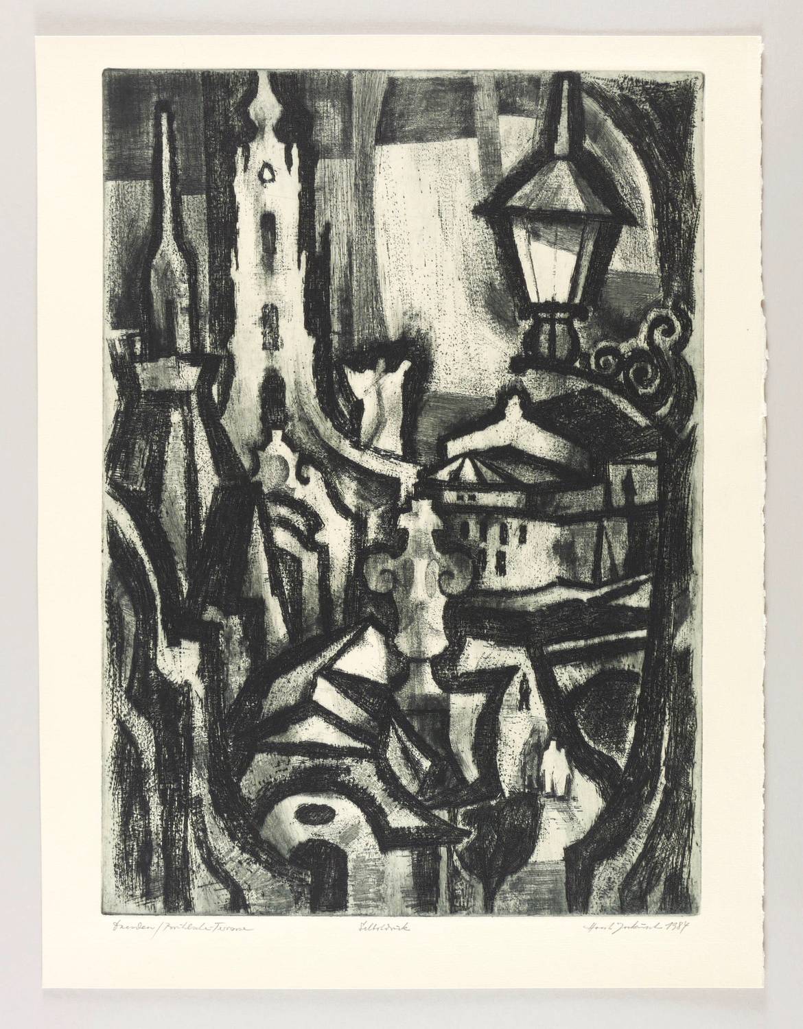 Rechts unten in Bleistift signiert und datiert: ″Horst Jockusch 1984″. Links bezeichnet: ″Dresden / Brühlsche Terrasse / Selbstdruck″. – Sehr guter Zustand.
