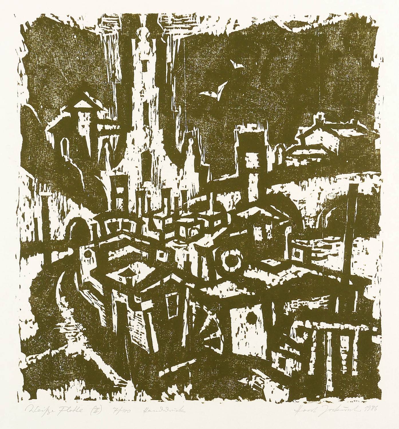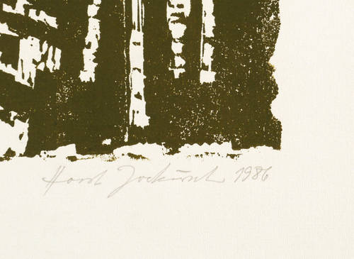 Rechts unten in Bleistift signiert und datiert: ″Horst Jockusch 1986″. Links eignehändig bezeichnet: ″Weiße Flotte (II) 7/100 Handdruck″. – Tadellos. Sehr guter Zustand.