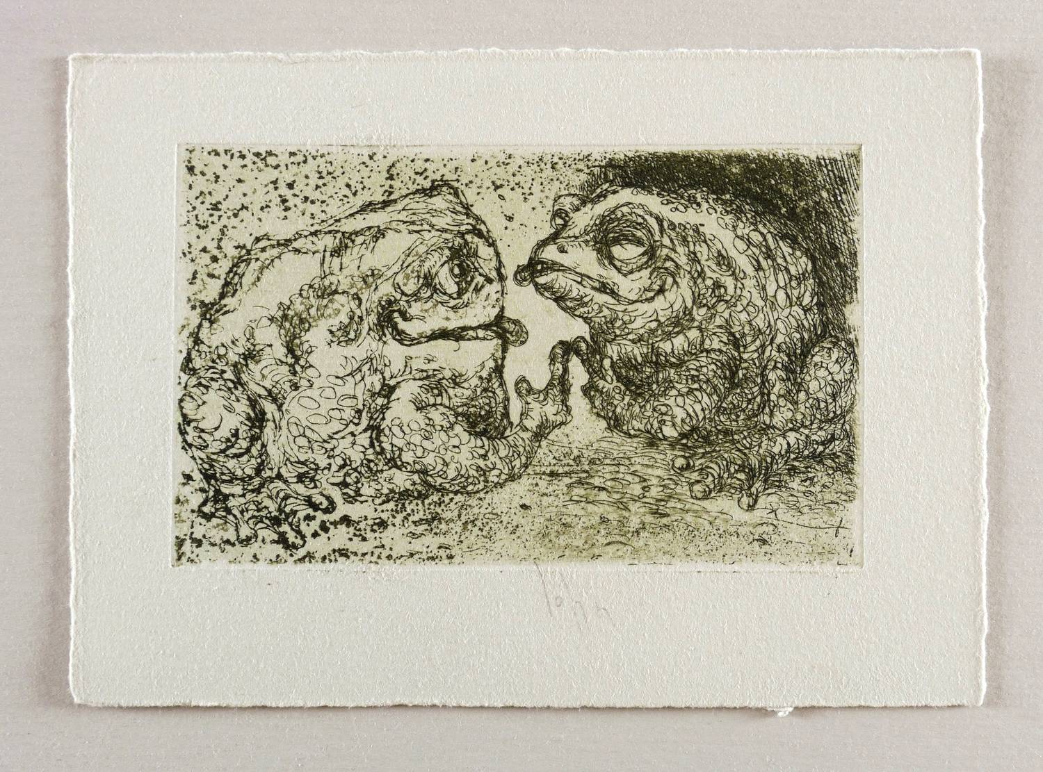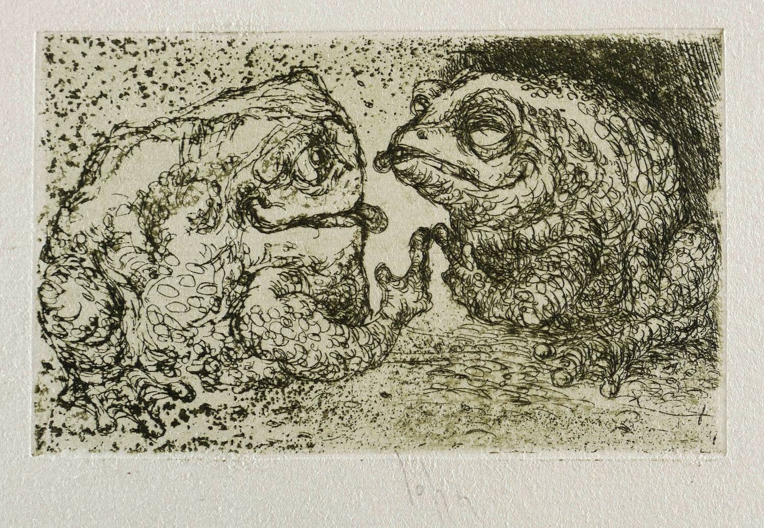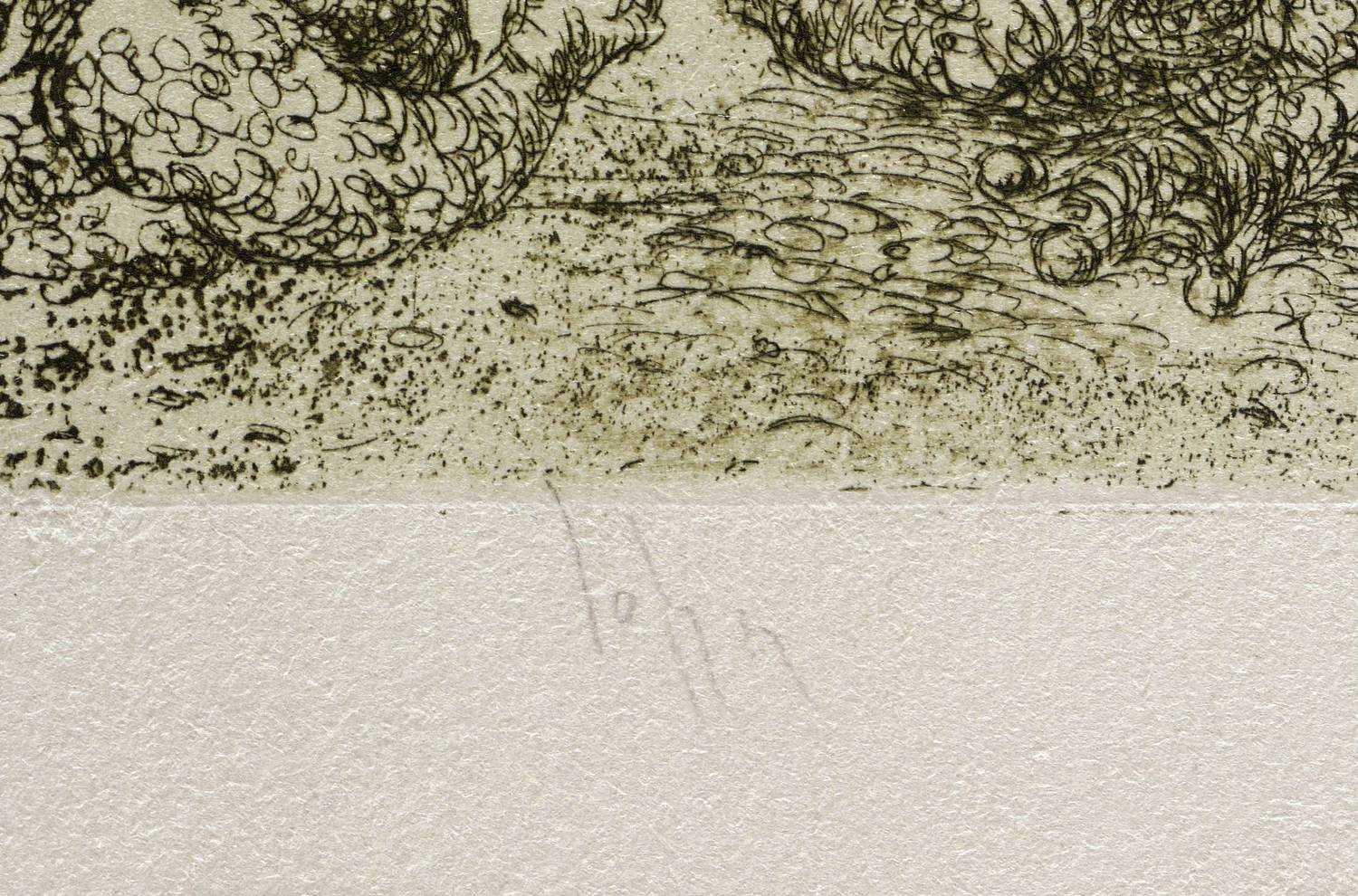 Um 2000. Radierung / Reservage & Strichätzung, in Schwarz, auf starkem hellgrauem Tonkarton. – Originale Künstlergrafik, von Joachim John. – 7,1 x 11,3 cm (Darstellung / Platte), 11 x 15 cm (Blatt).