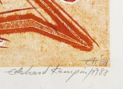 Eckhard Kempin (*1941 Neu-Schönwalde / Pommern, lebt und arbeitet in Radebeul). Deutscher Maler und Grafiker. 1945-1947 Umsiedlung nach Domsdorf bei Bad Liebenwerda. Ausbildung zum Gebrauchswerber. Abitur.1968-73 Studium an der Dresdner Kunsthochschule (HfBK) bei Gerhard Kettner und Hans Mroczinski. Danach freischaffend als Maler und Grafiker tätig. Um 1989 in Weimar tätig, dort zahlreiche v.A: baugebundenen Projekte. 1998-2011 in Radebeul, wo er eine Ateliergalerie betrieb.