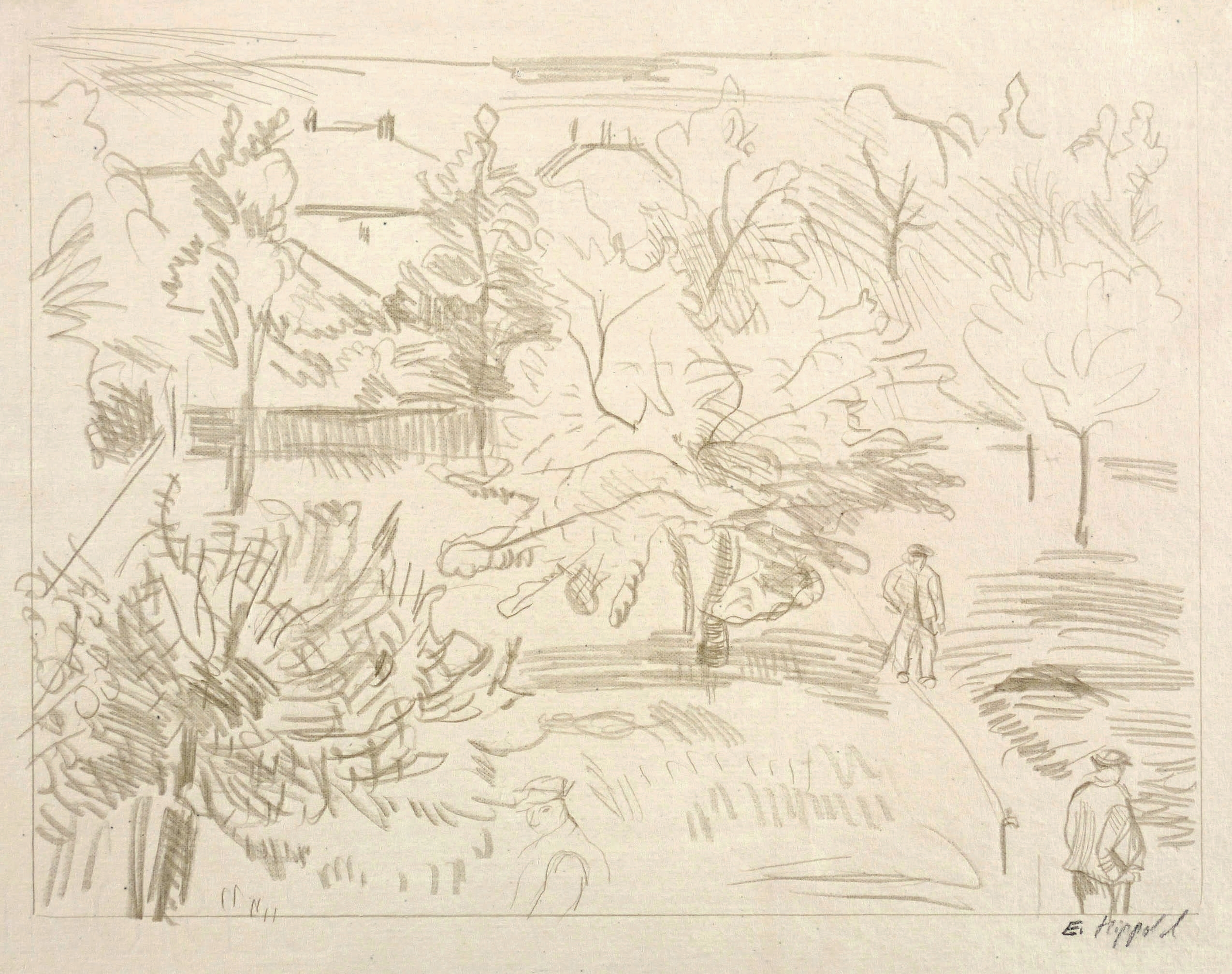 Rechts unten in Bleistift signiert: ″E. Hippold″. – Originale Reißzwecklöchlein in den Ecken. Sehr guter Erhaltungszustand.