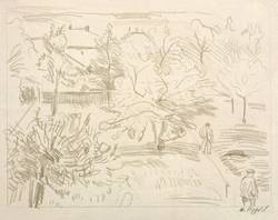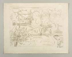 1950-1959. Zeichnung / Bleistiftzeichnung, auf tonig gestrichenem Bütten. – Originale Künstlergrafik, von Erhard Hippold. – Unikat. – 19,5 x 25,6 cm (Darstellung), 25 x 31 cm (Blatt).