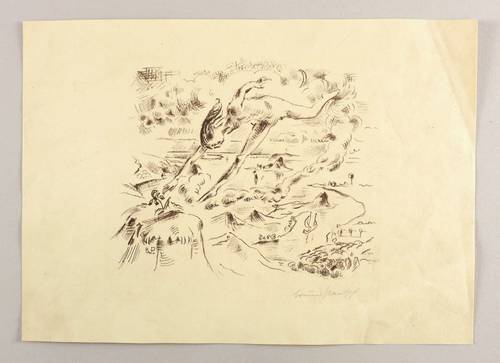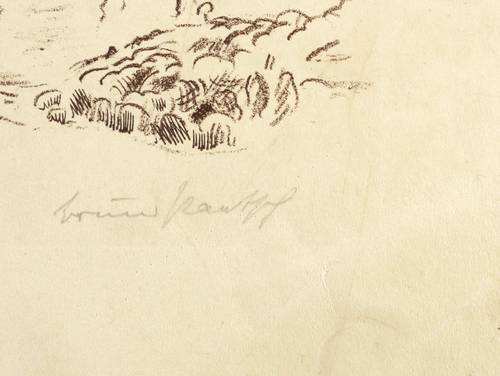 Rechts unten in Bleistift signiert. Im Stein links unten zusätzlich Signatur: ″B.P.″ – Papier etwas knickspurig. Diverse Lagerspuren. Mäßig guter Zustand.