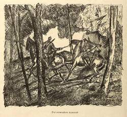 Stilijanov-Nedo 61. – Aus: Kriegszeit. Künstlerflugblätter (Berlin: Paul Cassirer & Alfred Gold 1914-1916). – Nicht handsigniert. Im Stein signiert rechts unten: ″W. Jäckel″. Unterhalb typografisch Titel. – Rückseitig weitere Lithografie ″Der verwundete Kamerad″ von József Bato. – Im Rand leicht knickspurig. Oberflächlich geringfügiger Abklatsch von Druckerschwärze. Insgesamt mäßig guter Zustand.