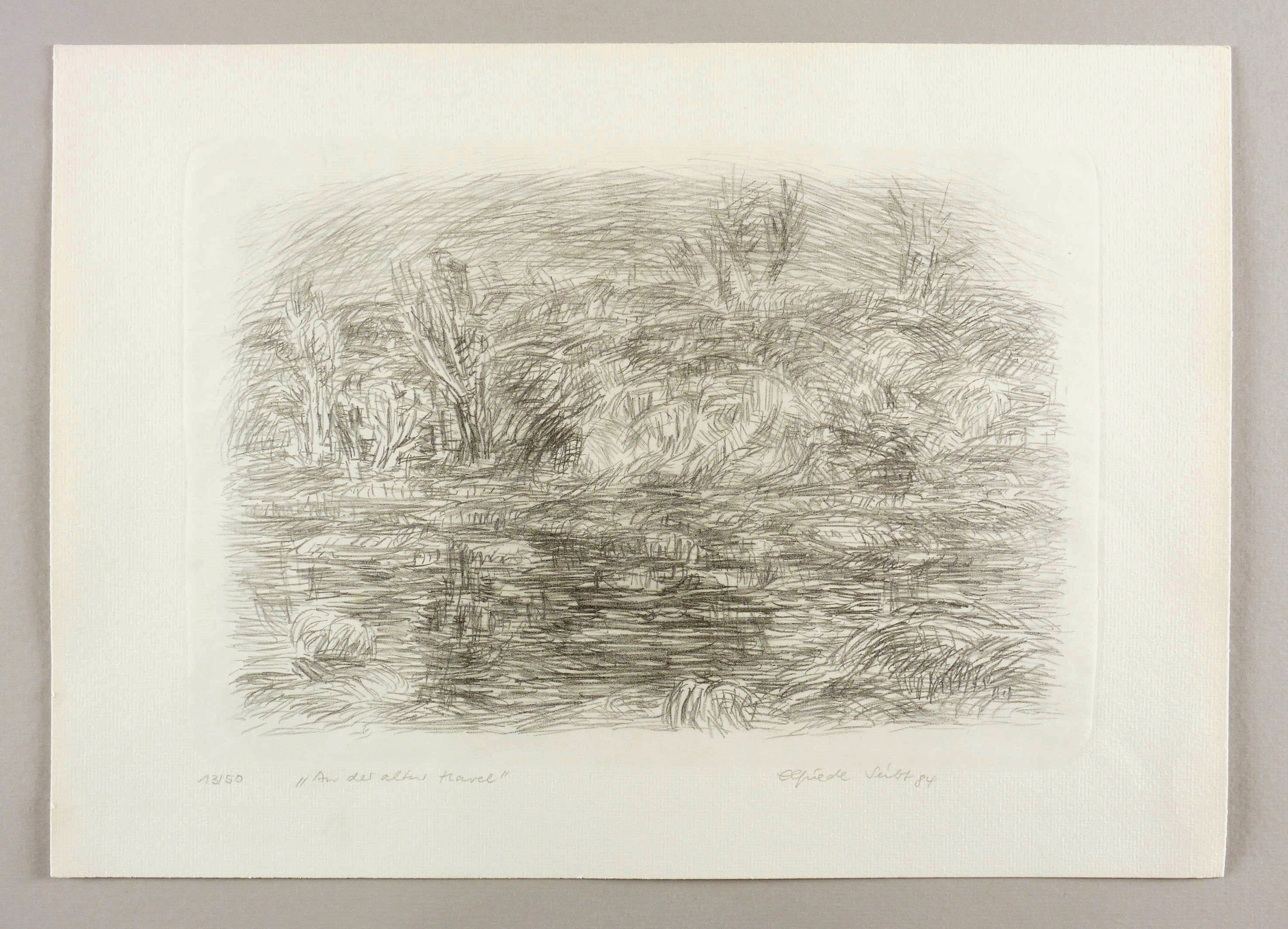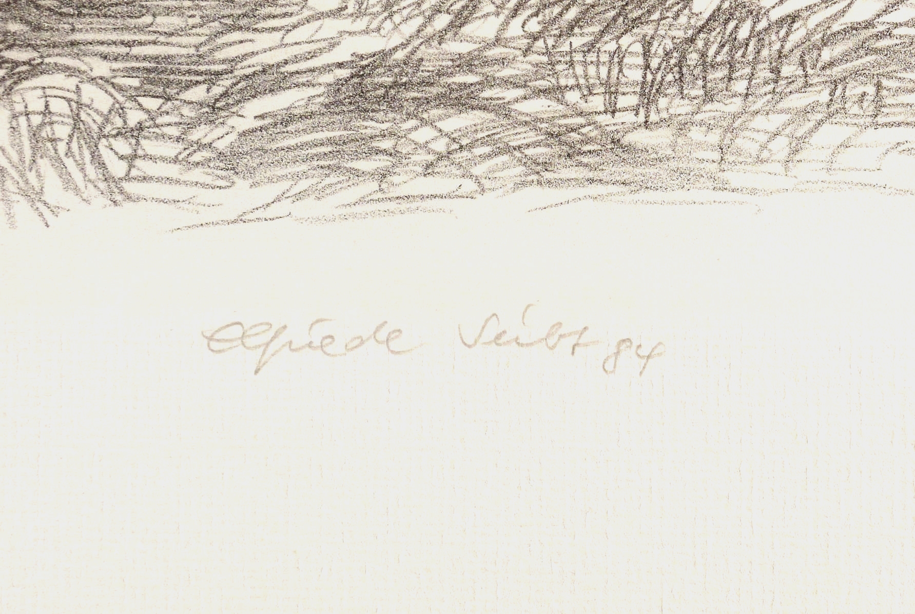 1984. Lithografie, in Schwarz, auf festem hellem Maschinenbütten. – Originale Künstlergrafik, von Elfriede Seibt. – Auflage Exemplar Nr. 13/50. – 23,5 x 34,5 cm (Darstellung / Druckbild), 35 x 48 cm (Blatt).