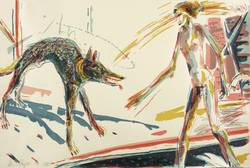 Stefan Thomas Wagner (*1951 Leipzig, lebt und arbeitet in Leipzig). Deutscher Maler und Grafiker. 1968-74 Lehre und Tätigkeit als Tiefdrucker. 1974-80 Studium an der Hochschule für Grafik und Buchkunst Leipzig (HGB) bei Arno Rink, Bernhard Heisig und Hartwig Ebersbach. Seit 1981 freischaffend in Leipzig. Aufbau einer Radierwerkstatt, 1982 Gründung Edition STHW (orginalgrafische Editionen und Künstlerbücher). 1983-86 Studium Druckgrafik an der Hochschule Burg Giebichenstein in Halle bei Frank Ruddigkeit. 1987 Verlust vieler Werke durch Einbruch in Atelier. 1989-91 Meisterschüler bei Wolfgang Mattheuer an der Akademie der Künste Berlin. 1991/92 Lehrauftrag Siebdruck an der HGB Leipzig. Ab 2001 Aufbau, Lehre und Leitung an der Fachschule für Gestaltung Leipzig.