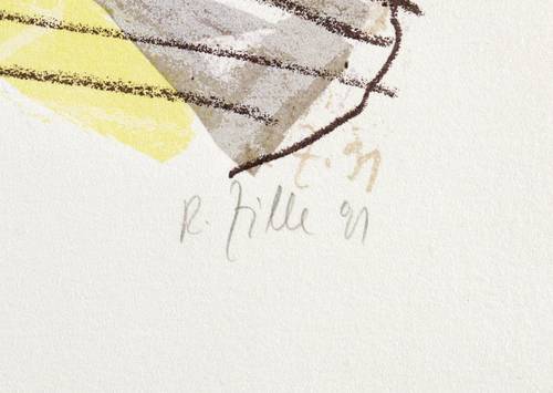 1991. Farblithografie / Kreide- & Pinsellithografie, in 5 Farben, auf weißem Velinkarton. – Originale Künstlergrafik, von Rainer Zille. – Künstlerexemplar (e.a.). – 37,4 x 34,2 cm (Darstellung / Druckbild), 51 x 40 cm (Blatt).