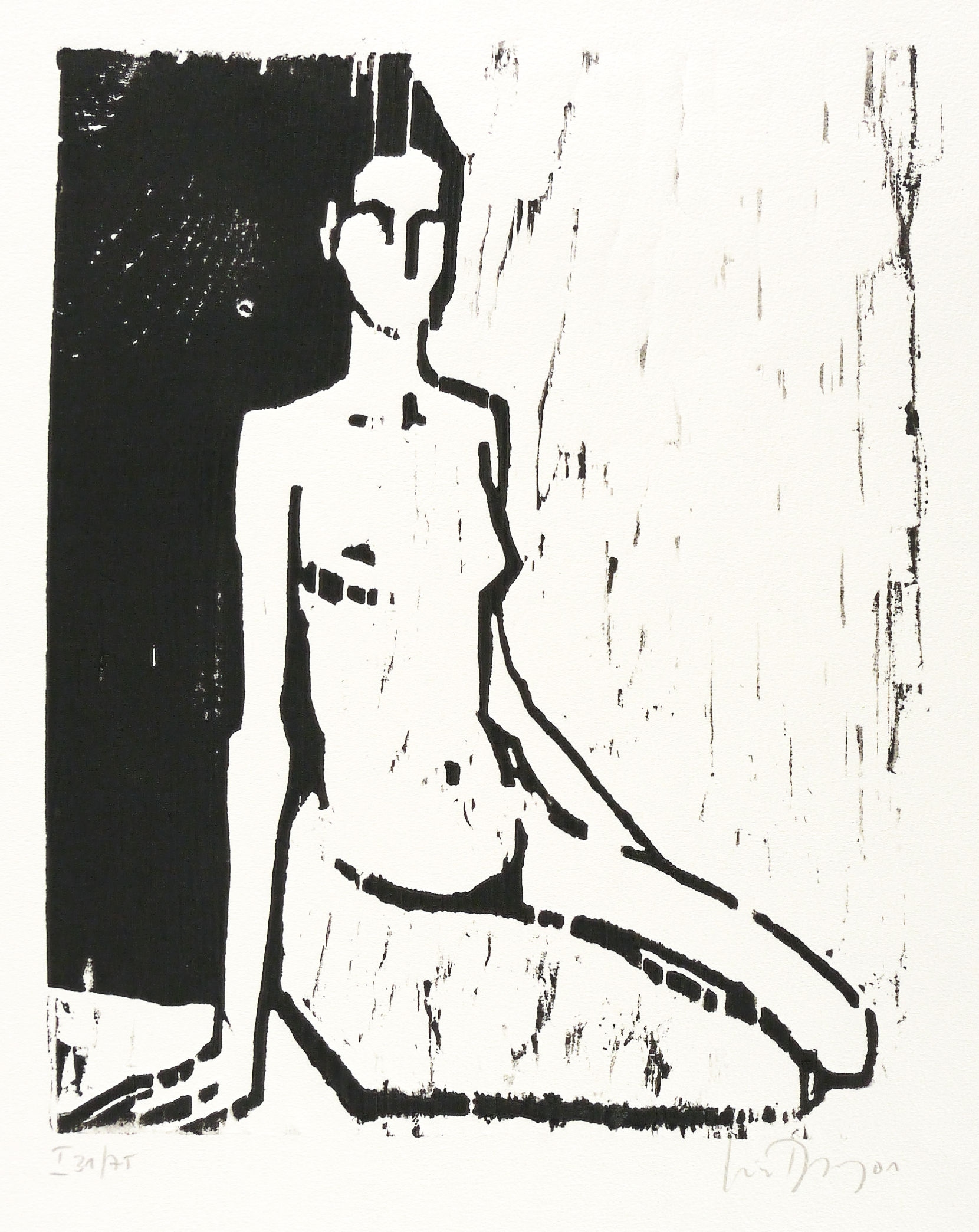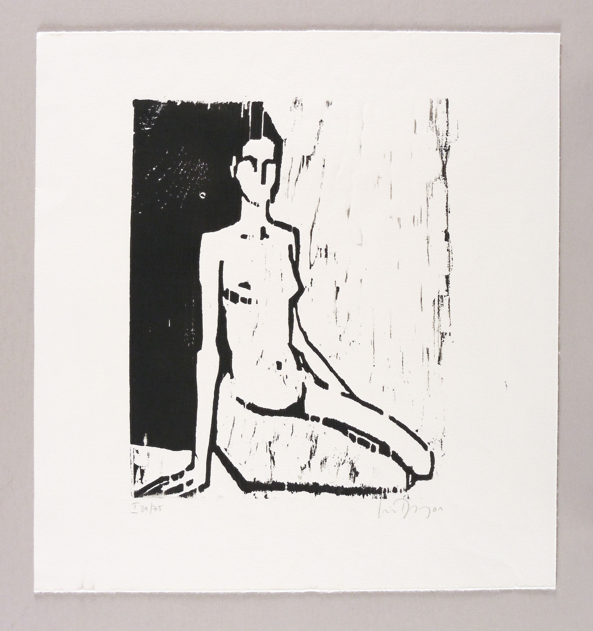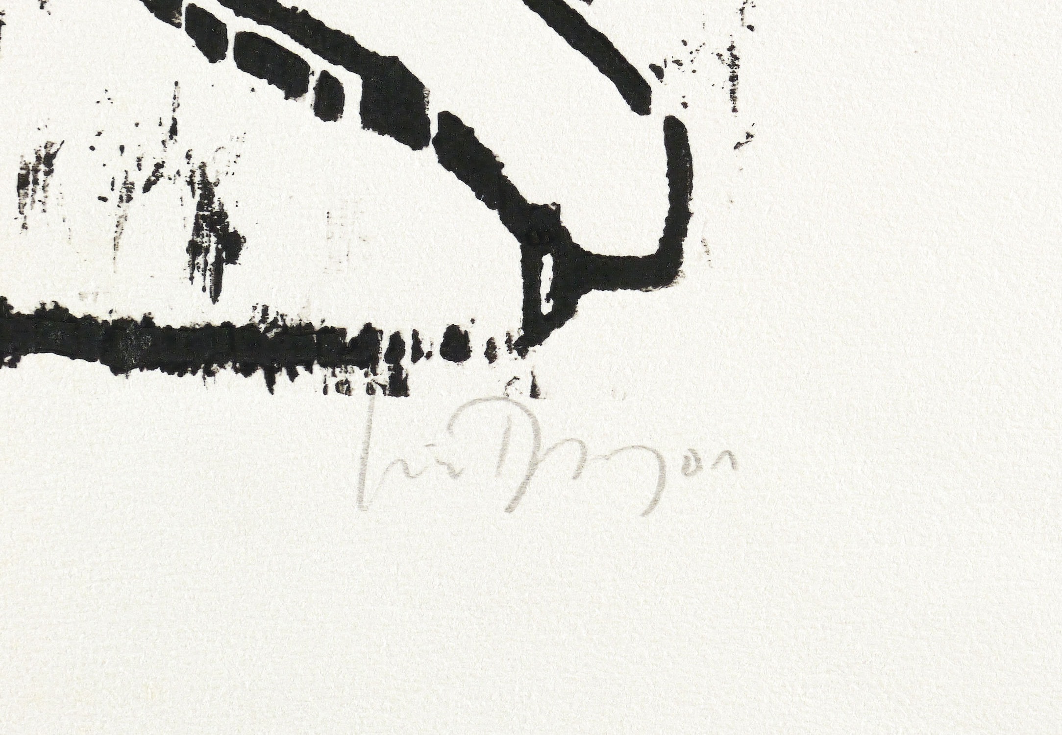2001. Holzschnitt, in Schwarz, auf leichtem hellchamois Velin. – Originale Künstlergrafik, von Luise Dewerny. – Auflage Exemplar Nr. 31/75. – 26,3 x 21,4 cm (Darstellung / Druckstock), 37 x 35 cm (Blatt).