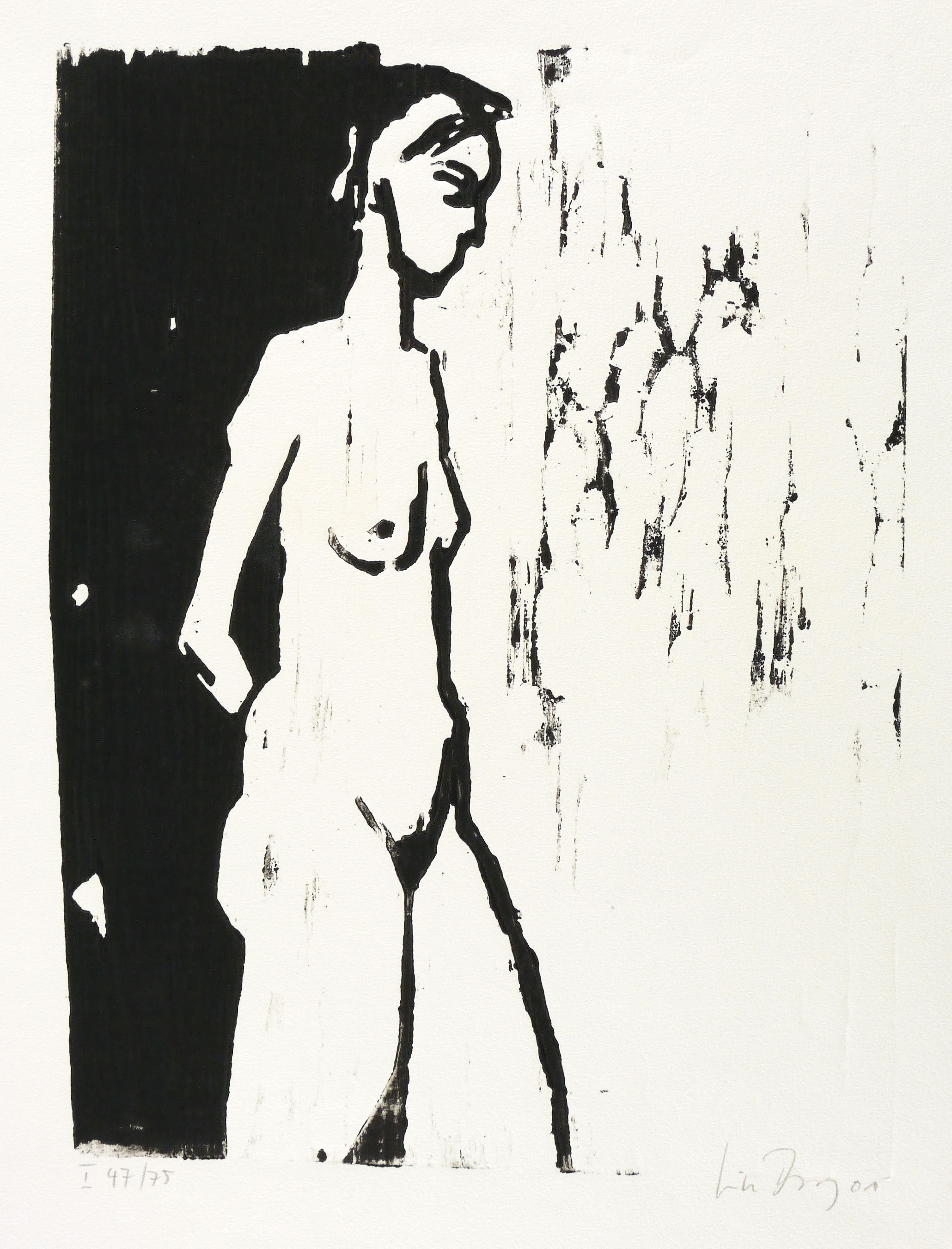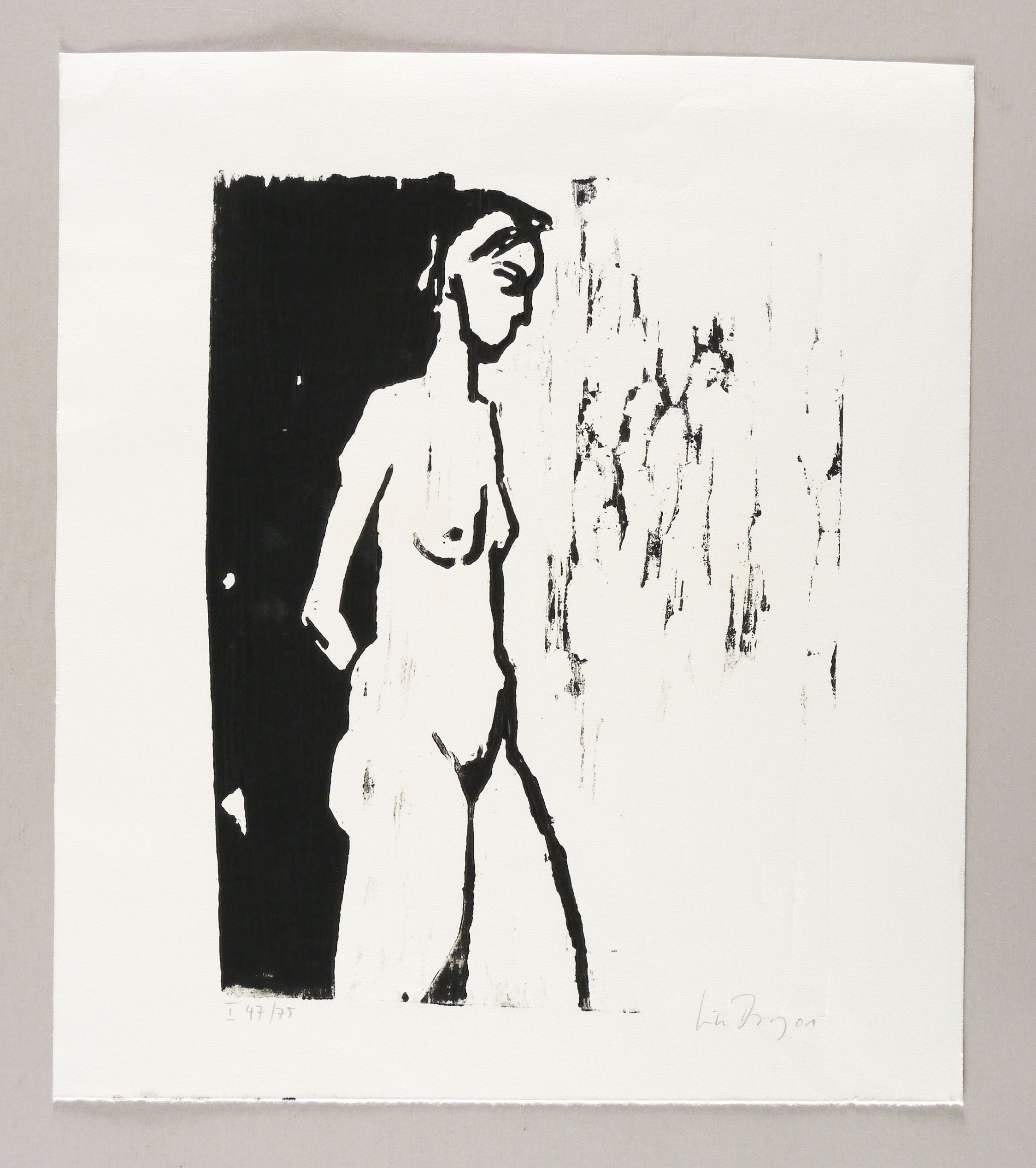 2001. Holzschnitt, in Schwarz, auf rauem hellchamois Velin. – Originale Künstlergrafik, von Luise Dewerny. – Auflage Exemplar Nr. 47/75. – 31,8 x 24,2 cm (Darstellung / Druckstock), 40 x 35 cm (Blatt).