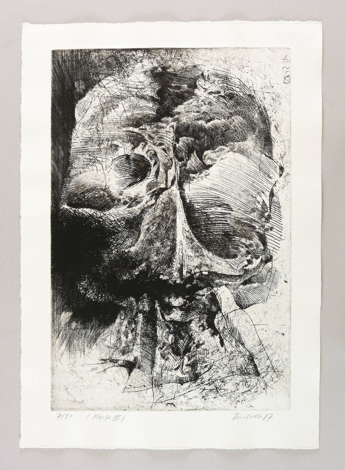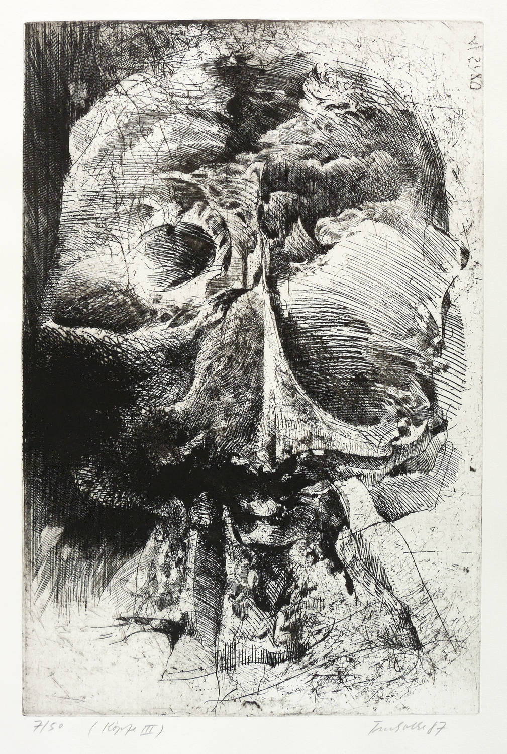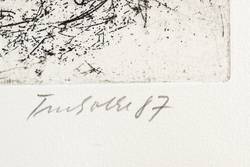 1987. Radierung / Strichätzung, in Schwarz, auf schwerem chamois Hahnemühle. – Originale Künstlergrafik, von Dieter Tucholke. – Auflage Exemplar Nr. 7/50. – 49,4 x 32,8 cm (Darstellung / Platte), 58 x 41 cm (Blatt).