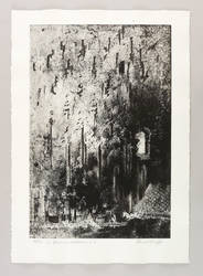 1987. Radierung / Reservage & Strichätzung, in Schwarz, auf schwerem chamois Hahnemühle. – Originale Künstlergrafik, von Dieter Tucholke. – Auflage Exemplar Nr. 7/50. – 49,4 x 32,8 cm (Darstellung / Platte), 59 x 42 cm (Blatt).