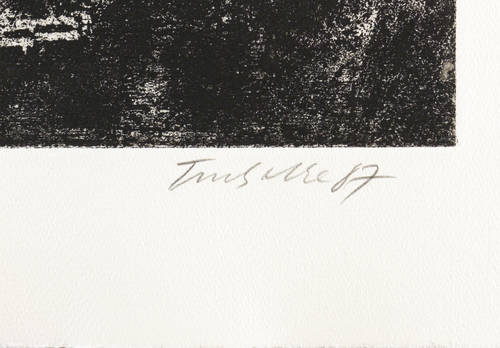 Aus: Dieter Tucholke, Die Nacht hat 12 Stunden. Ein Totentanz (Berlin: Staatlicher Kunsthandel der DDR 1987). – Rechts unten in Bleistift signiert und datiert: ″Tucholke 87″. Links Auflagenbezeichnung und Titel. Trockenstempel der Grafik-Edition. Wasserzeichen. – Tadellos erhalten. Sehr guter Zustand.