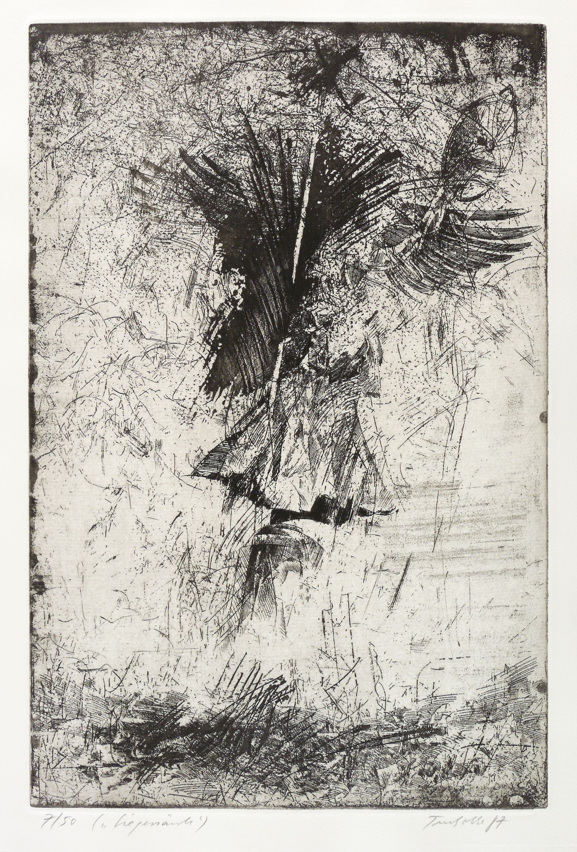 1987. Radierung / Reservage & Strichätzung, in Schwarz, auf schwerem chamois Hahnemühle. – Originale Künstlergrafik, von Dieter Tucholke. – Auflage Exemplar Nr. 7/50. – 49,4 x 32,7 cm (Darstellung / Platte), 59 x 41 cm (Blatt).