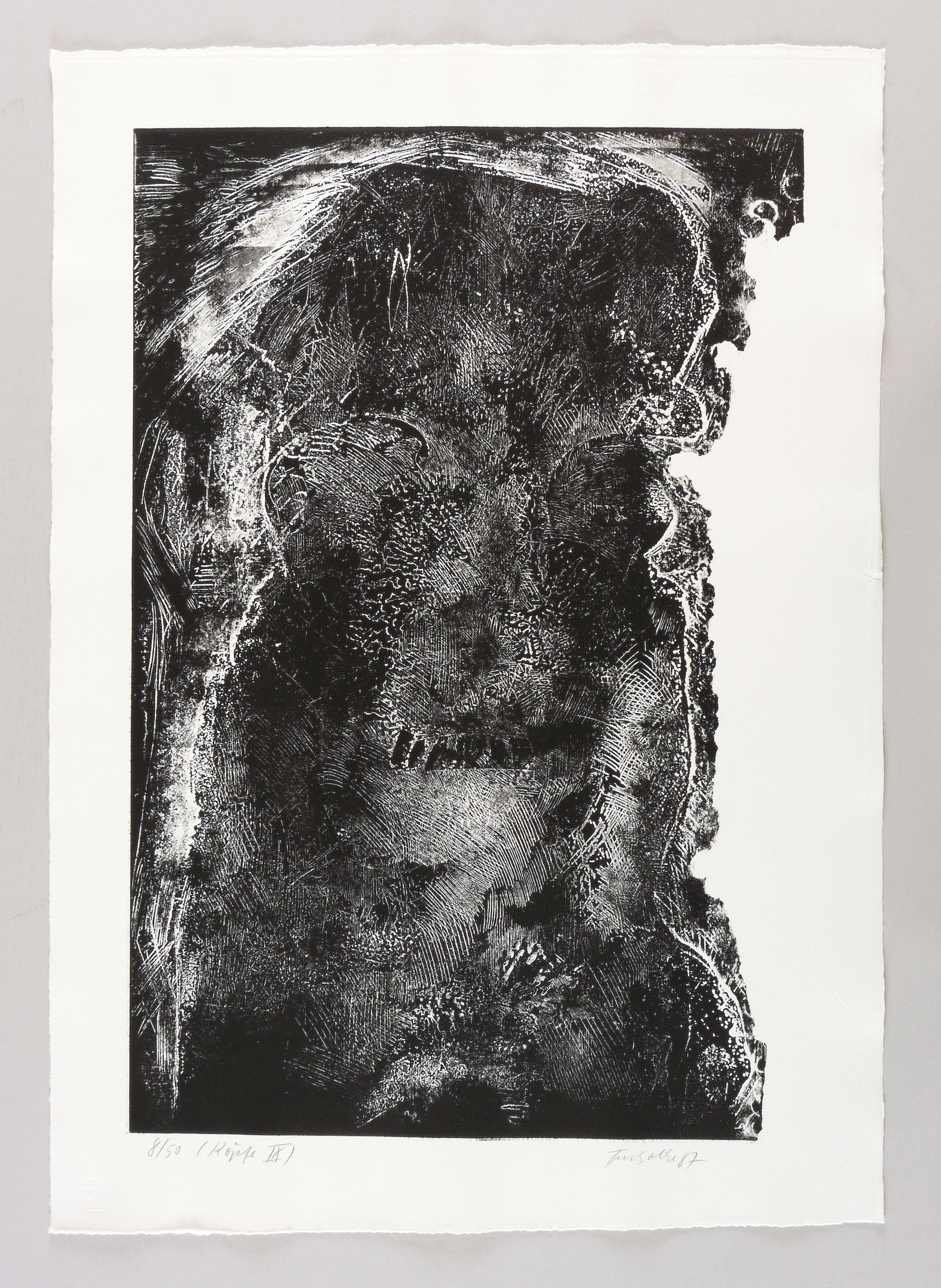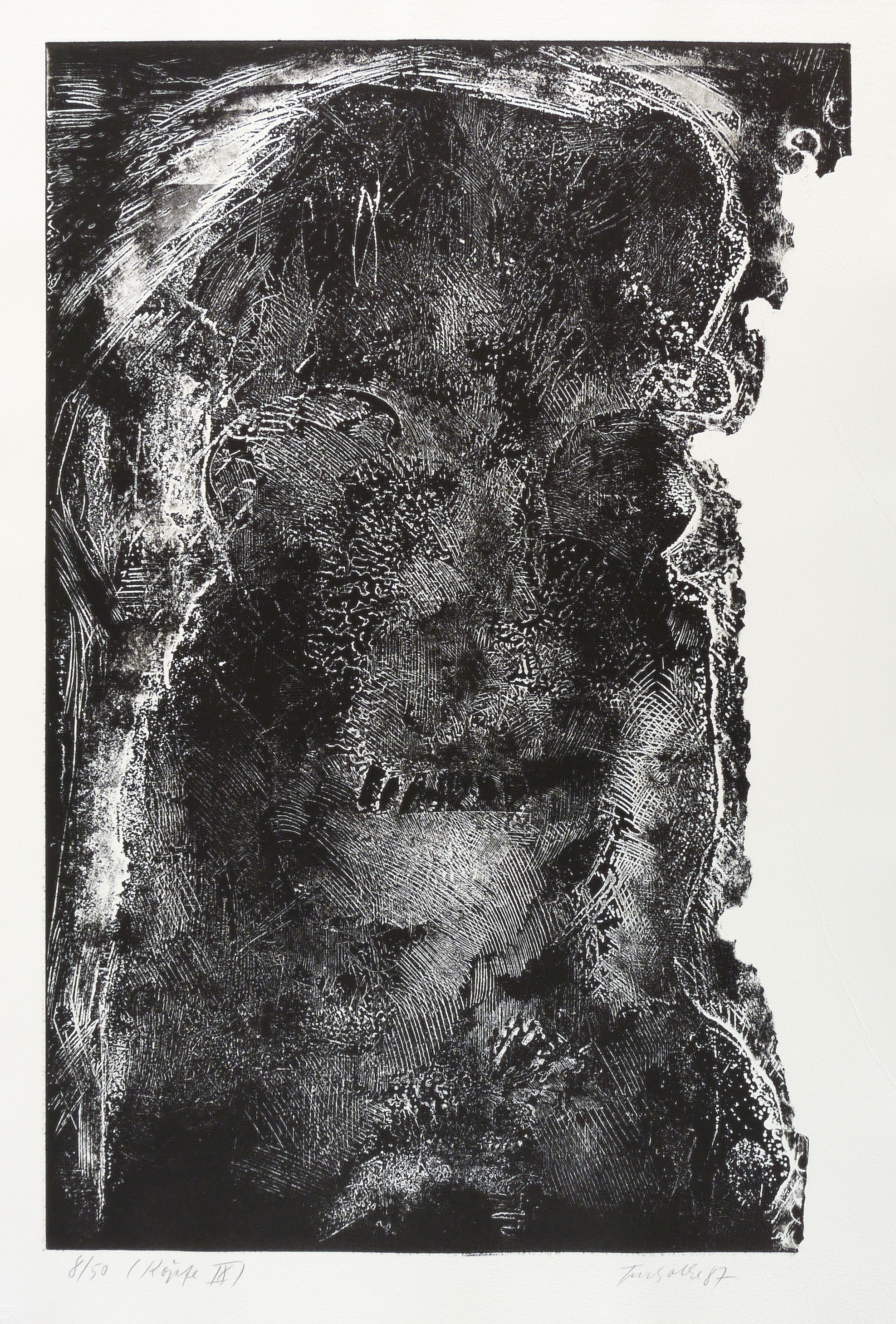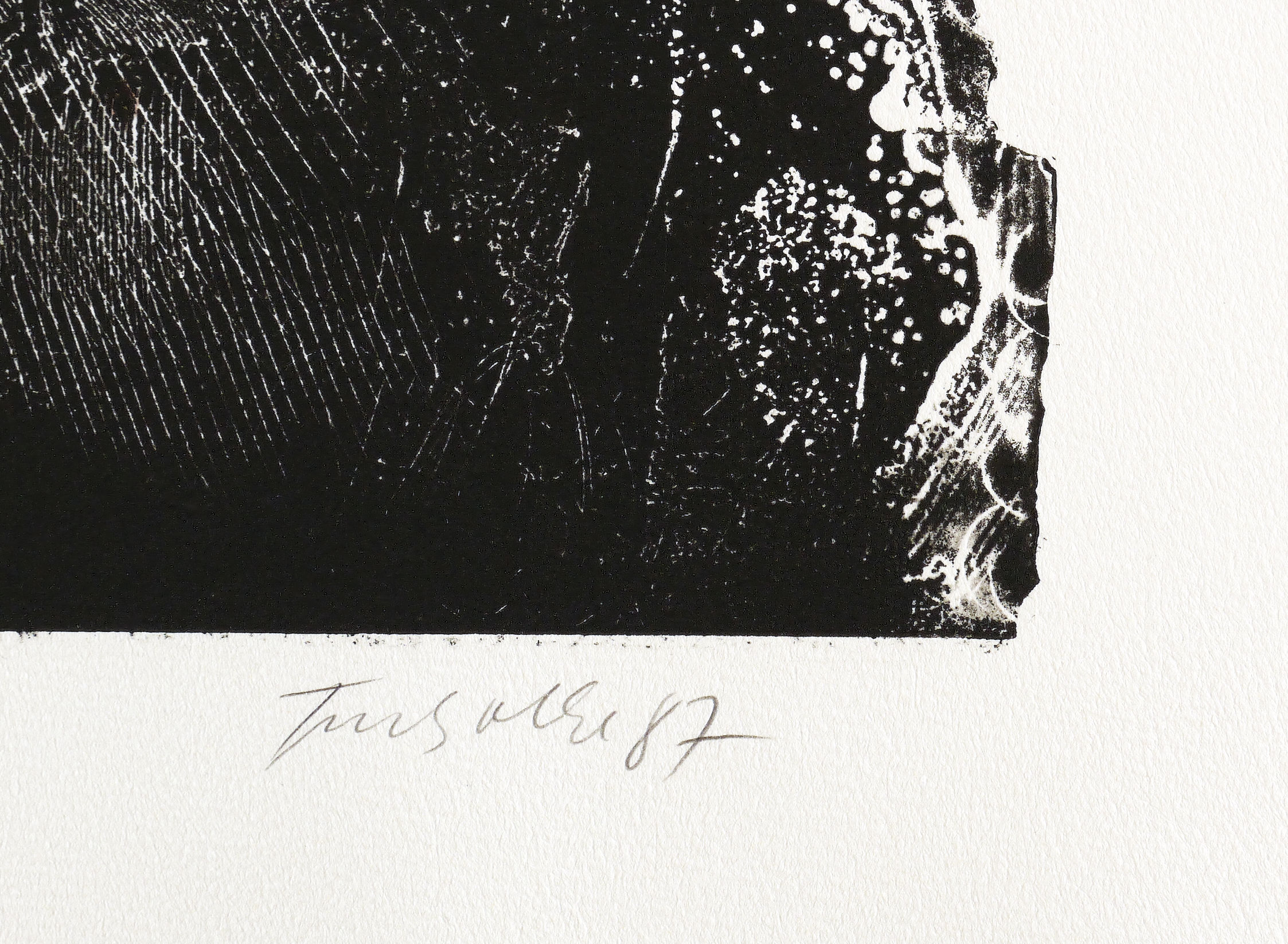 1987. Radierung / Reservage, geschabt, in Schwarz, auf schwerem Hahnemühle. – Originale Künstlergrafik, von Dieter Tucholke. – Auflage Exemplar Nr. 7/50. – 49,7 x 33,2 cm (Darstellung / Platte), 59 x 41 cm (Blatt).