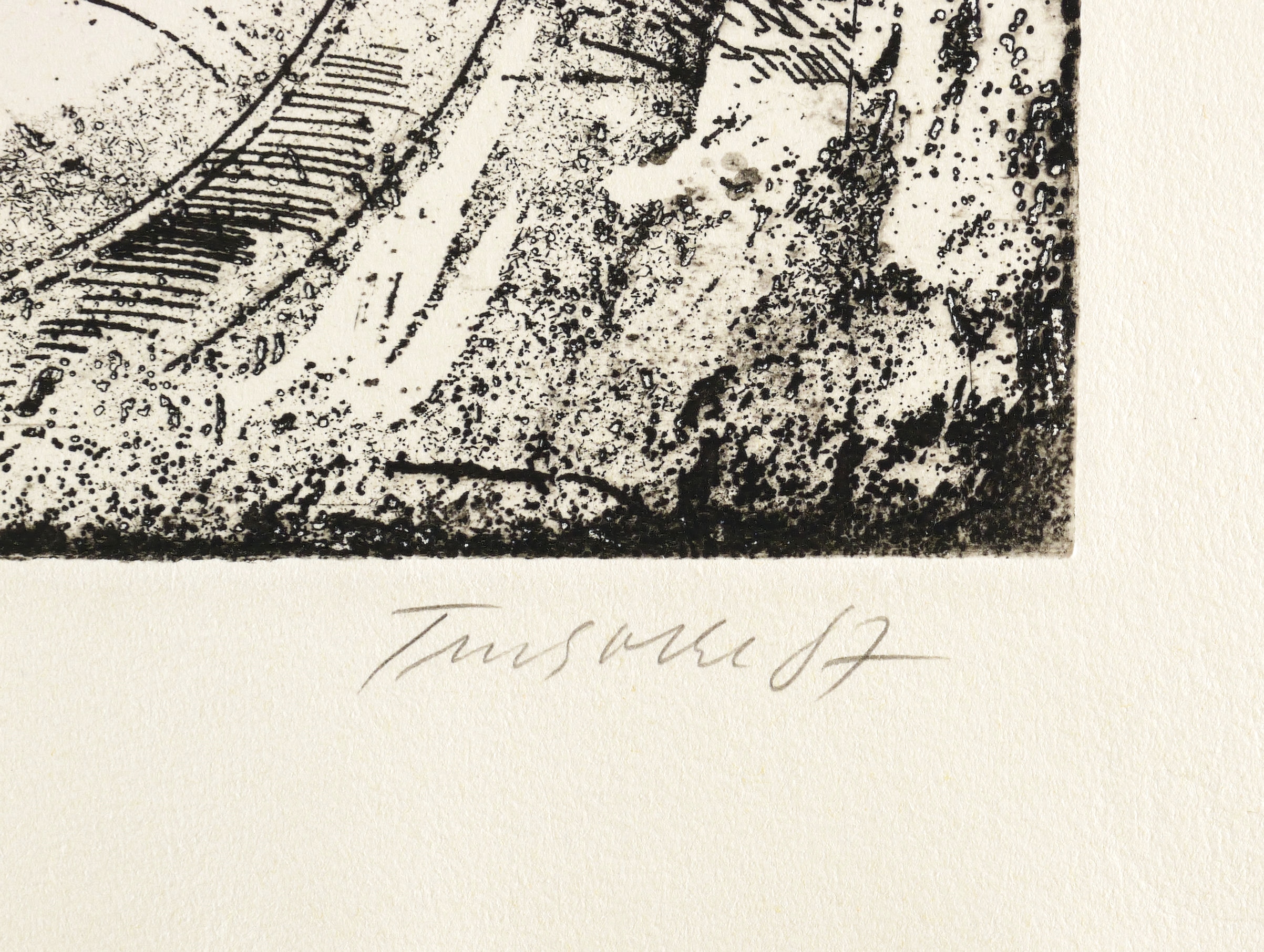 1987. Radierung / Reservage & Strichätzung, in Schwarz, auf schwerem chamois Hahnemühle. – Originale Künstlergrafik, von Dieter Tucholke. – Auflage Exemplar Nr. 7/50. – 49,3 x 32,6 cm (Darstellung / Platte), 59 x 42 cm (Blatt).