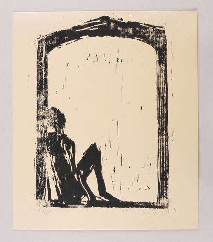 1999. Holzschnitt, in Schwarz, auf hellbraunem Velin. – Originale Künstlergrafik, von Luise Dewerny. – Auflage Exemplar Nr. 23/40. – 29,8 x 20,9 cm (Darstellung / Druckstock), 34 x 29 cm (Blatt).