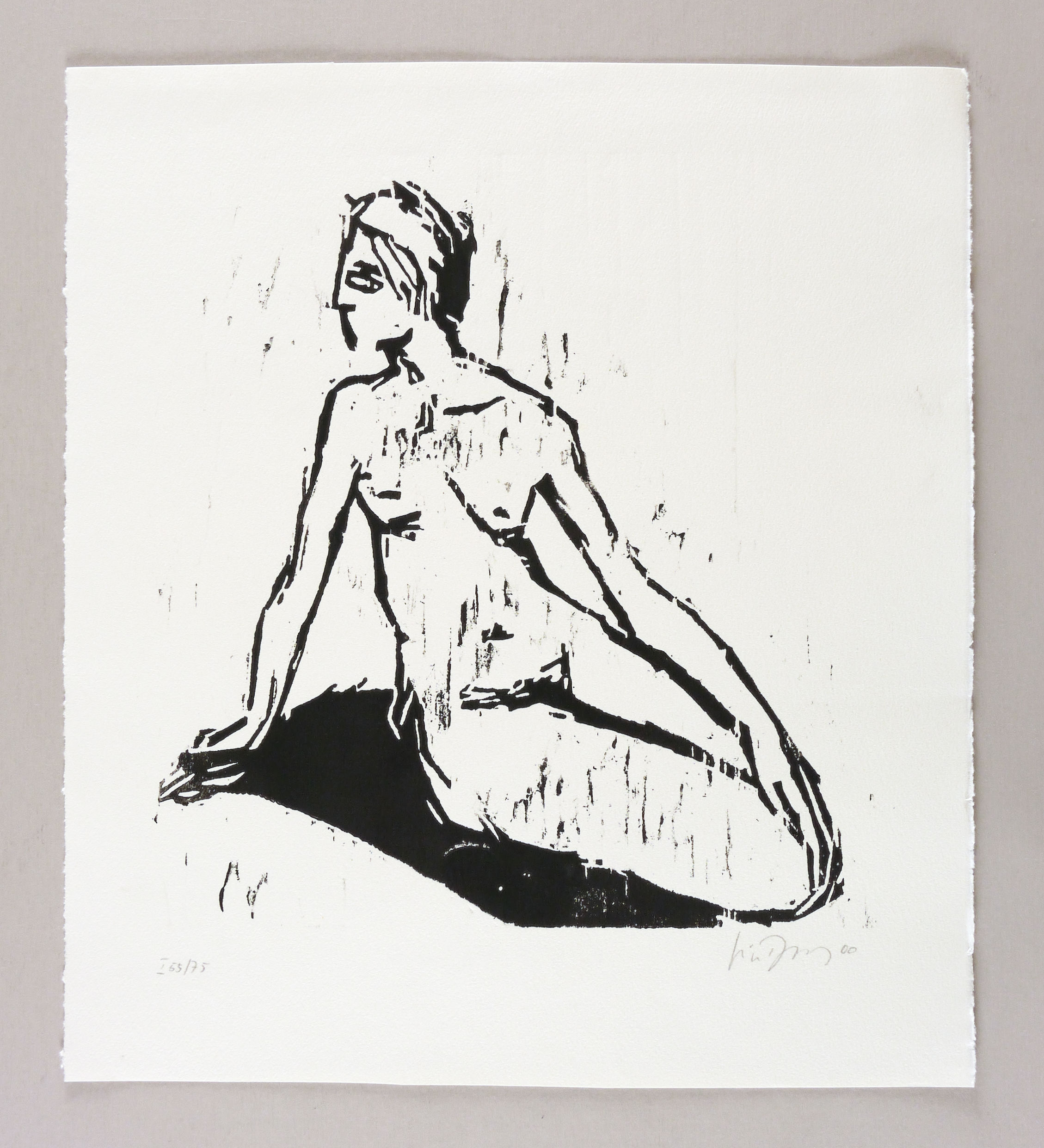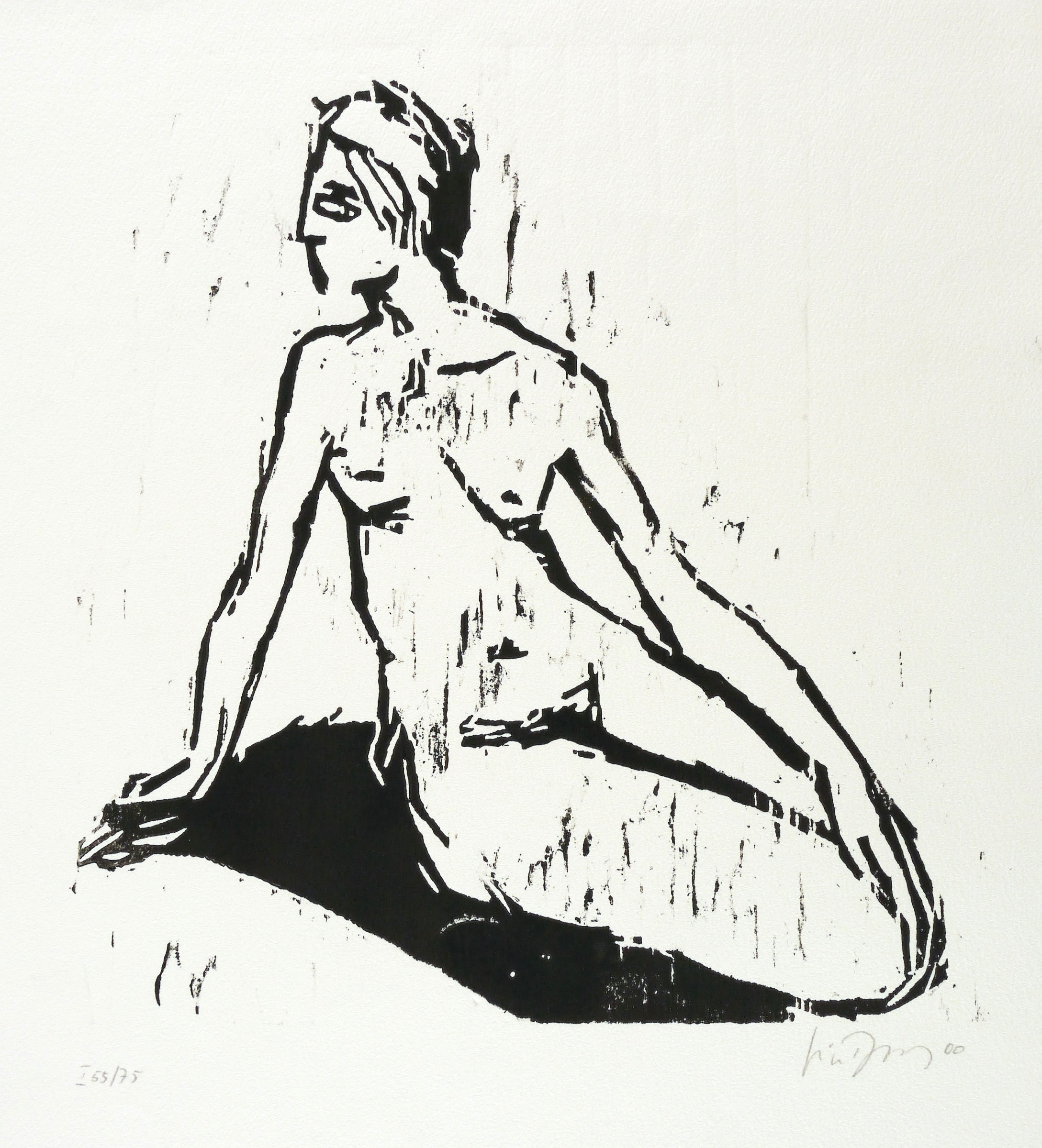 2000. Holzschnitt, in Schwarz, auf rauem hellchamois Velin. – Originale Künstlergrafik, von Luise Dewerny. – Auflage Exemplar Nr. 65/75. – 29,2 x 26,5 cm (Darstellung / Druckstock), 40 x 35 cm (Blatt).