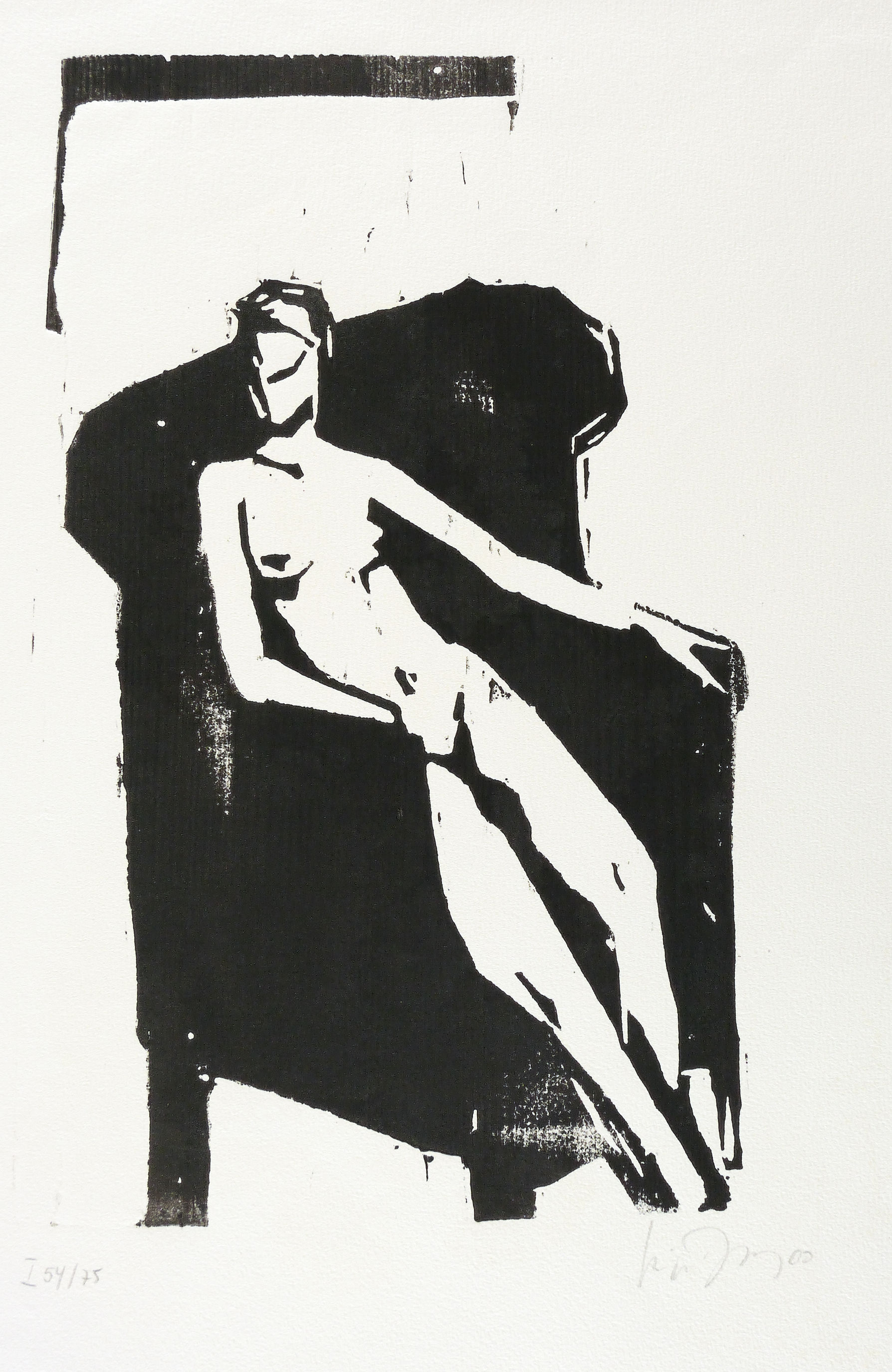 2000. Holzschnitt, in Schwarz, auf rauem hellchamois Velin. – Originale Künstlergrafik, von Luise Dewerny. – Auflage Exemplar Nr. 54/75. – 30,8 x 18,3 cm (Darstellung / Druckstock), 41 x 36 cm (Blatt).