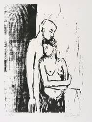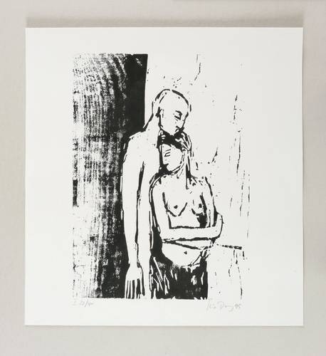 1999. Holzschnitt, in Schwarz, auf hellgrauem Tonpapier. – Originale Künstlergrafik, von Luise Dewerny. – Auflage Exemplar Nr. 23/40. – 30,7 x 22,2 cm (Darstellung / Druckstock), 38 x 35 cm (Blatt).