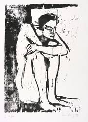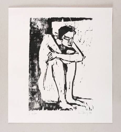 1999. Holzschnitt, in Schwarz, auf hellgrauem Tonpapier. – Originale Künstlergrafik, von Luise Dewerny. – Auflage Exemplar Nr. 23/40. – 31,0 x 21,3 cm (Darstellung / Druckstock), 39 x 35 cm (Blatt).