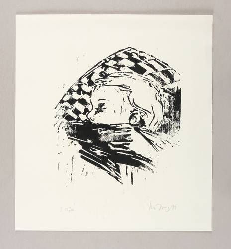 1999. Holzschnitt, in Schwarz, auf hellchamois Tonpapier. – Originale Künstlergrafik, von Luise Dewerny. – Auflage Exemplar Nr. 23/40. – 24,4 x 22,4 cm (Darstellung / Druckstock), 38 x 35 cm (Blatt).