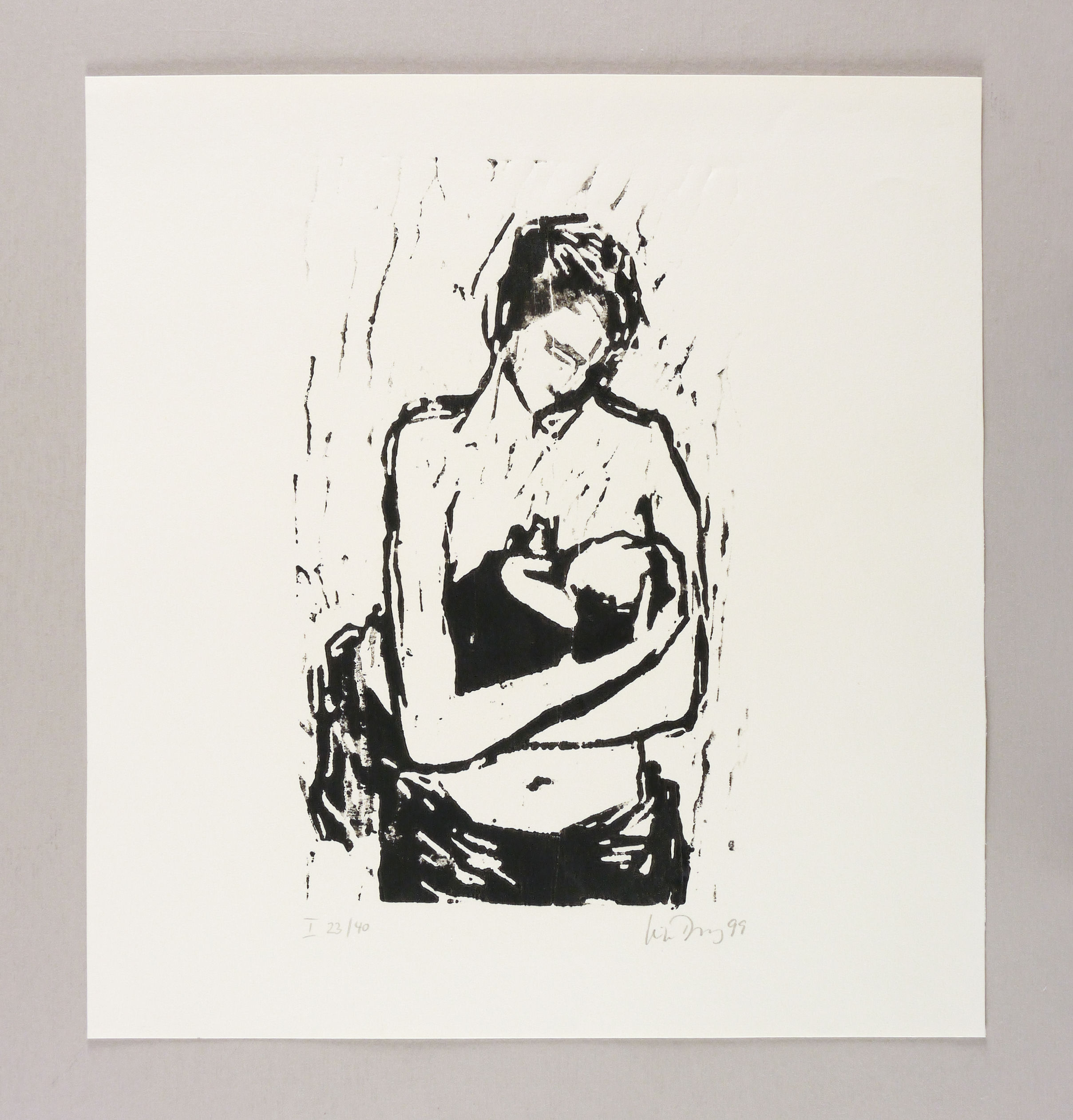 1999. Holzschnitt, in Schwarz, auf hellchamois Tonpapier. – Originale Künstlergrafik, von Luise Dewerny. – Auflage Exemplar Nr. 23/40. – 29,2 x 17,5 cm (Darstellung / Druckstock), 38 x 35 cm (Blatt).