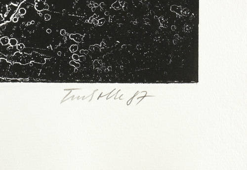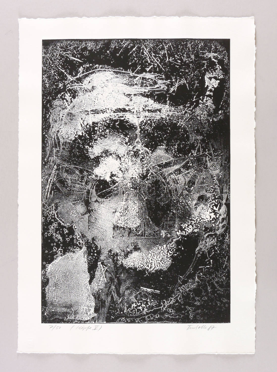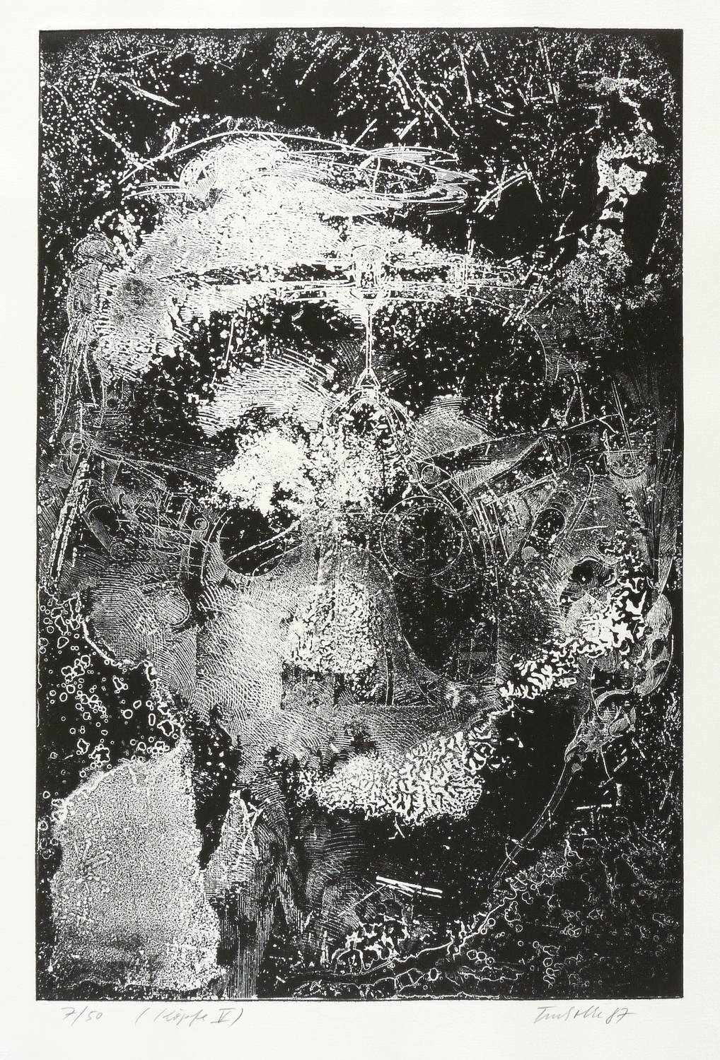 1987. Radierung / Reservage, geschabt, in Schwarz, auf schwerem Hahnemühle. – Originale Künstlergrafik, von Dieter Tucholke. – Auflage Exemplar Nr. 7/50. – 49,5 x 33,0 cm (Darstellung / Platte), 59 x 42 cm (Blatt).