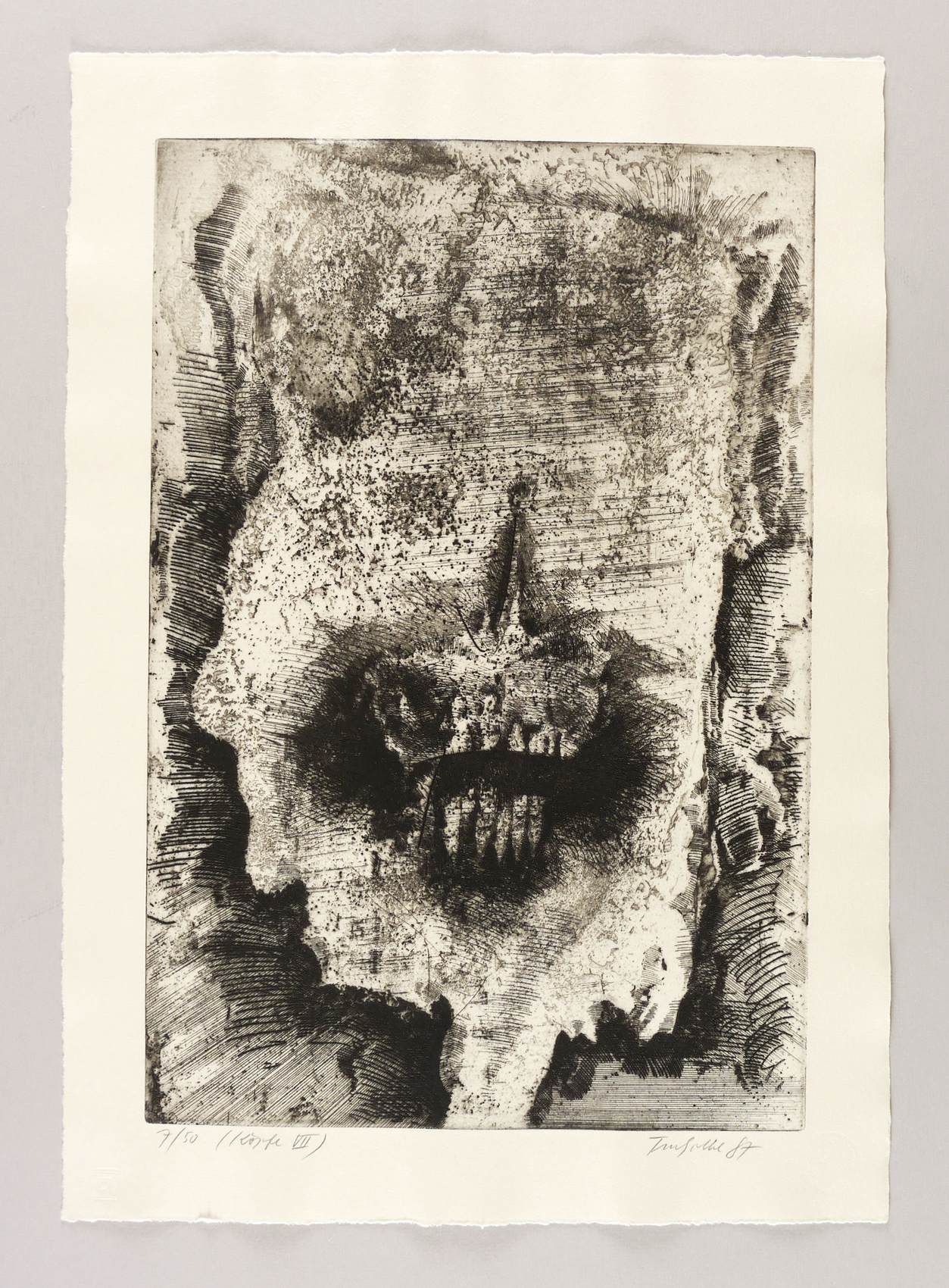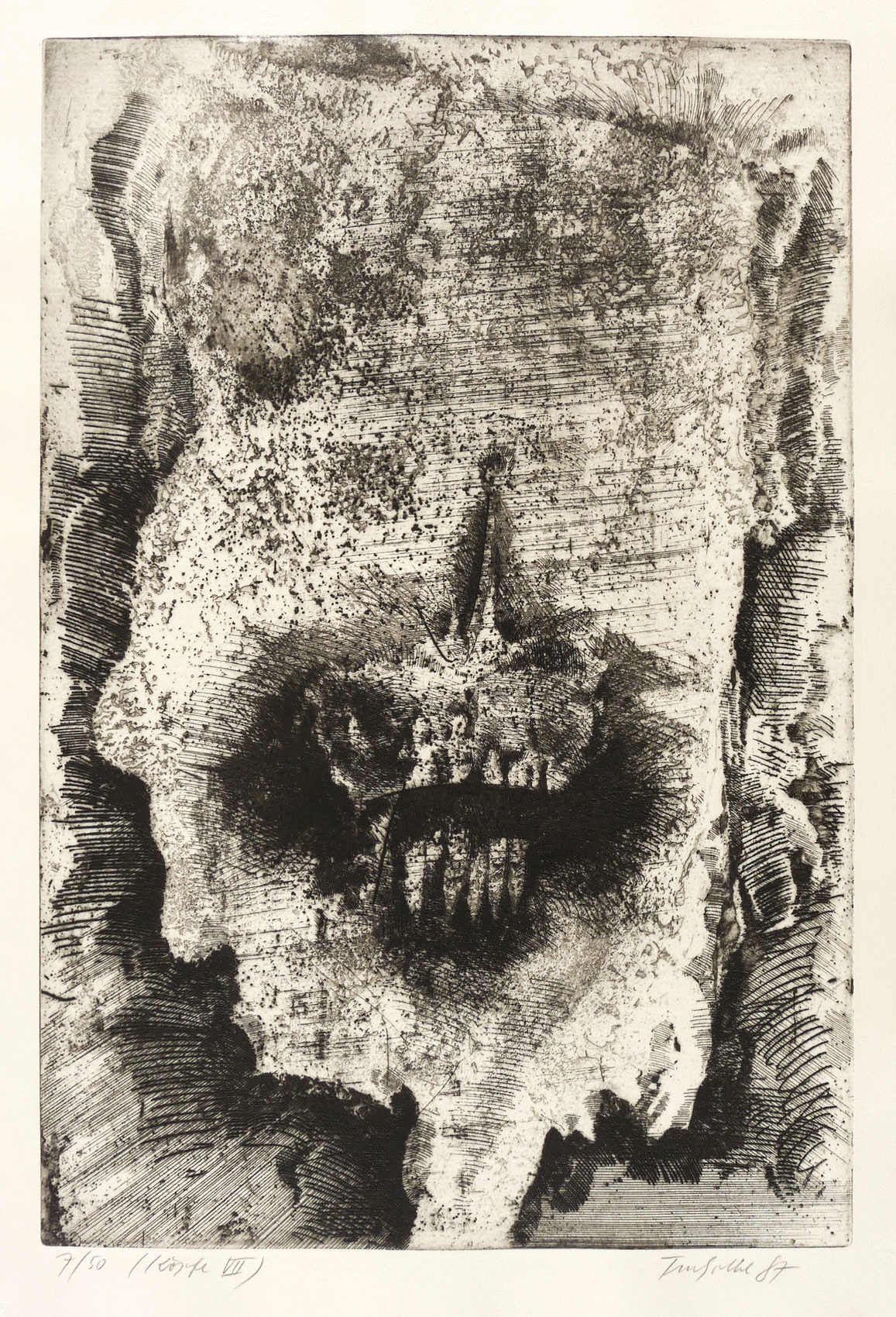 1987. Radierung / Reservage & Strichätzung, in Schwarz, auf schwerem Hahnemühle. – Originale Künstlergrafik, von Dieter Tucholke. – Auflage Exemplar Nr. 7/50. – 49,2 x 33,0 cm (Darstellung / Platte), 59 x 42 cm (Blatt).