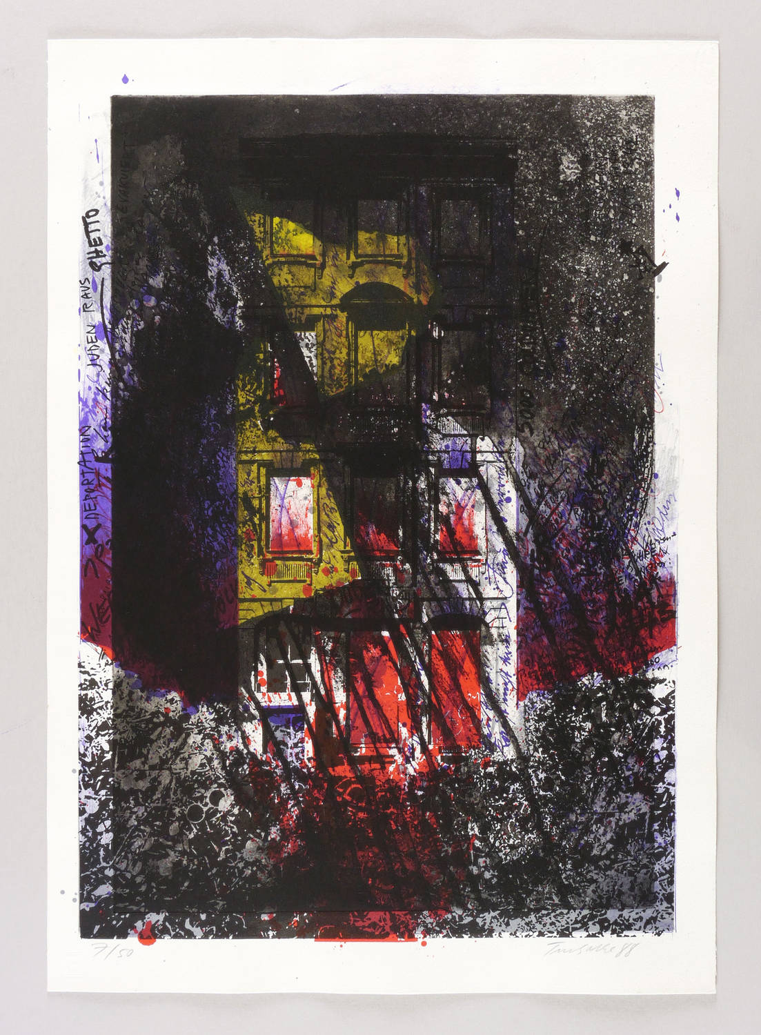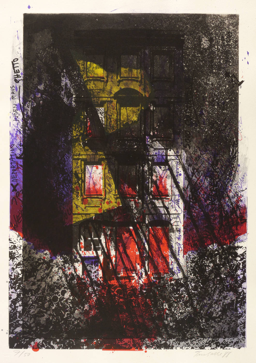 1987. Mischtechnik / Farbsiebdruck & Radierung, in 5 Farben, auf starkem chamois Hahnemühle-Bütten. – Originale Künstlergrafik, von Dieter Tucholke. – Auflage Exemplar Nr. 7/50. – 51,3 x 36,5 cm (Darstellung / Druckbild), 58 x 41 cm (Blatt).